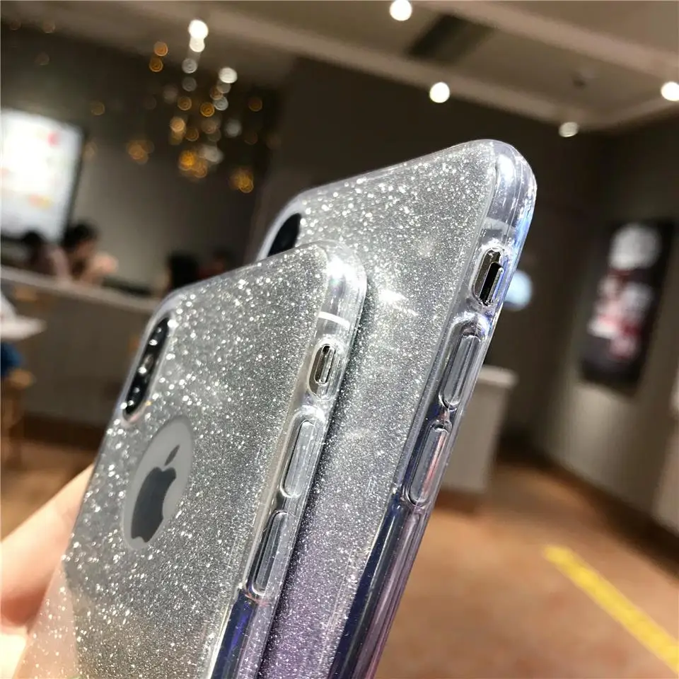 Glitter 2 in 1 Gradient Case For iphone XS MAX SE 5S 6S 7 8 Plus X XR Cover TPU Silicone Soft Back Caso for iphone XR Cover