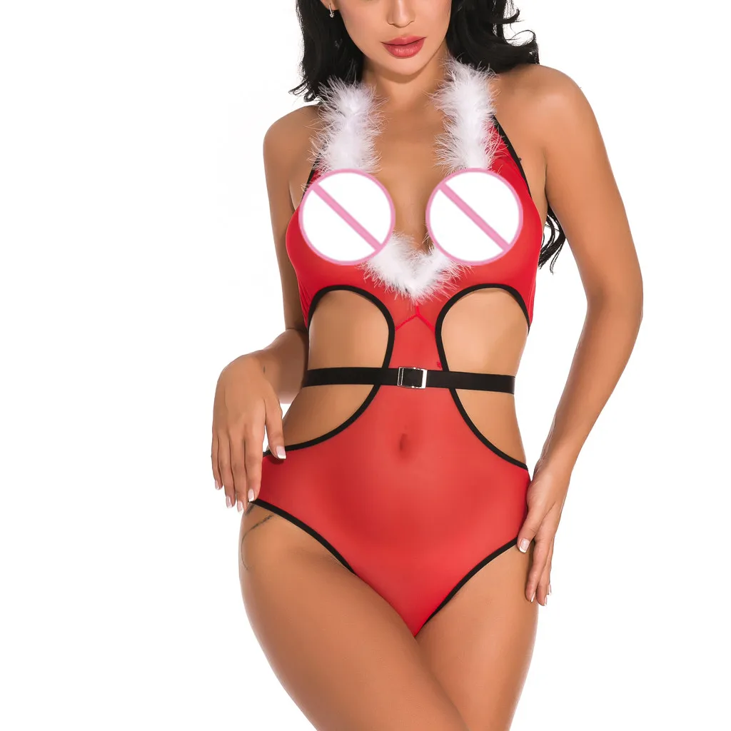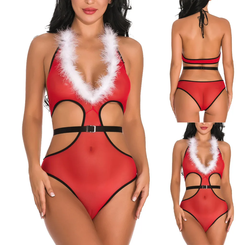 Женское рождественское сексуальное кружево женское бельё-Топик нижнее белье сплошное глубокий v-образный вырез прозрачное боди с открытой спиной эротические костюмы