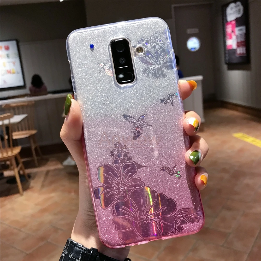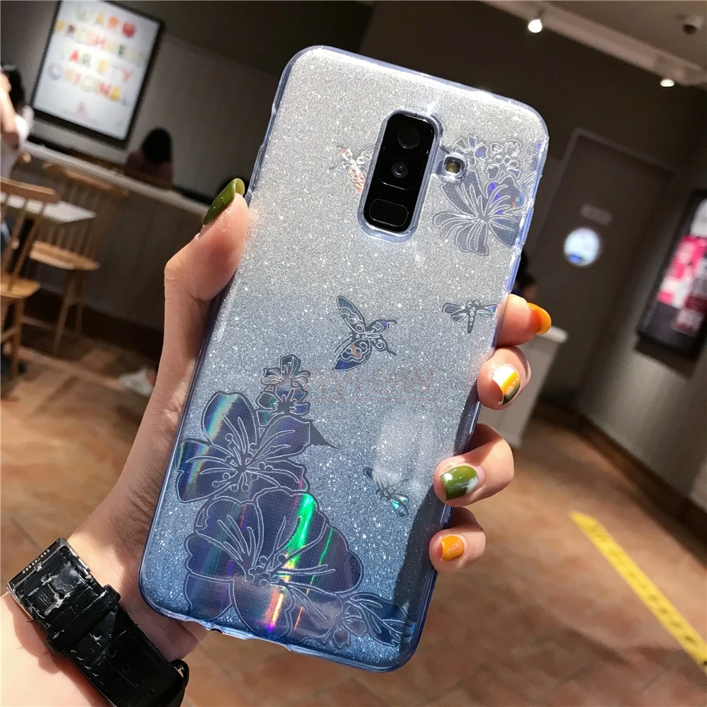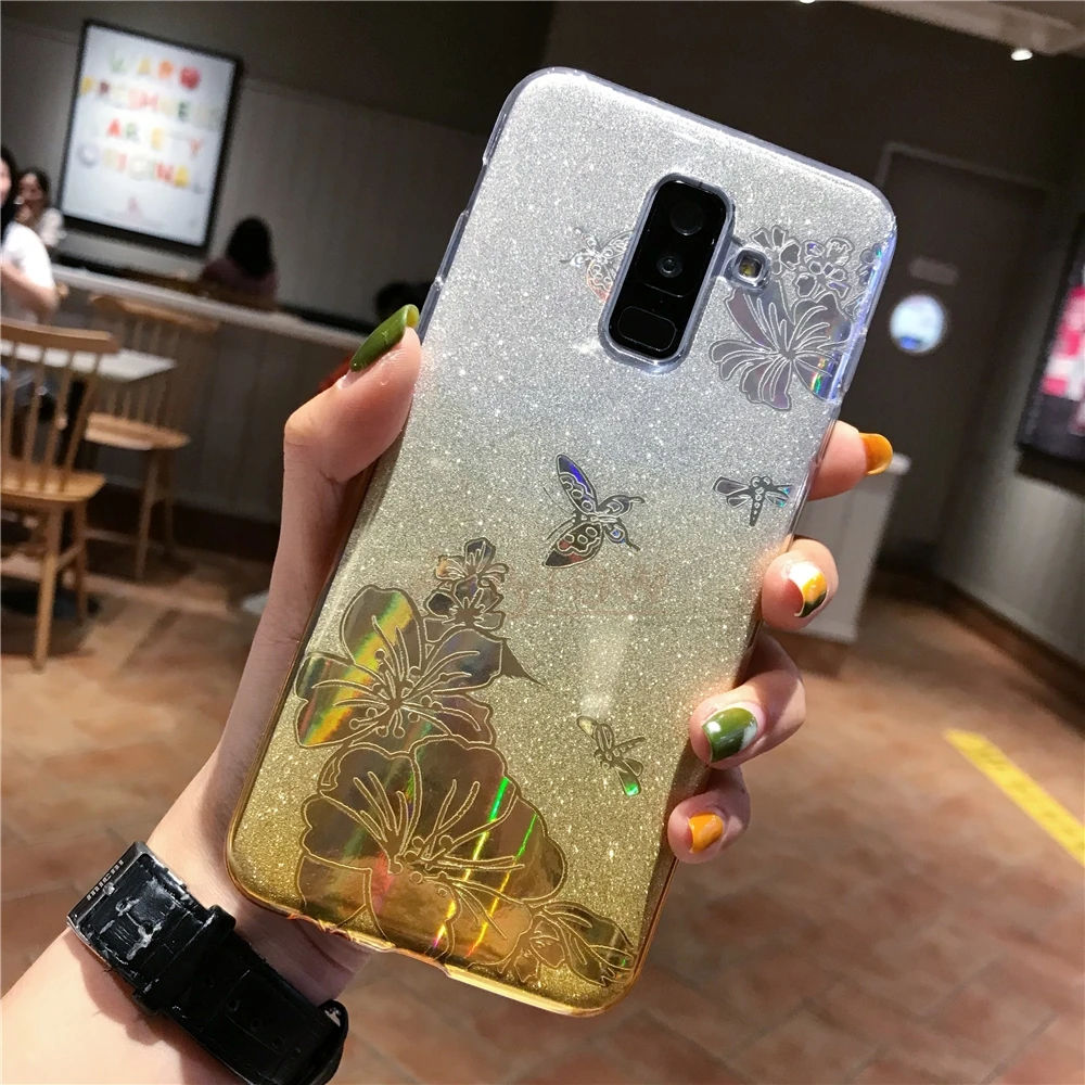 Gradient Buterfly Rose Flower Glitter TPU Case For Meizu 15 M6T M6S M5S M5C M6 M5 Note Cover Soft Cover for M3 U20 U10 MX6 Pro 6