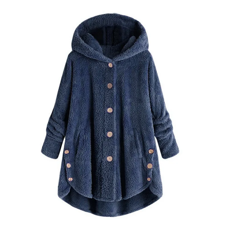 Мода женщин Кнопка пальто пушистый хвост Топы с капюшоном пуловер Свободный свитер блузка