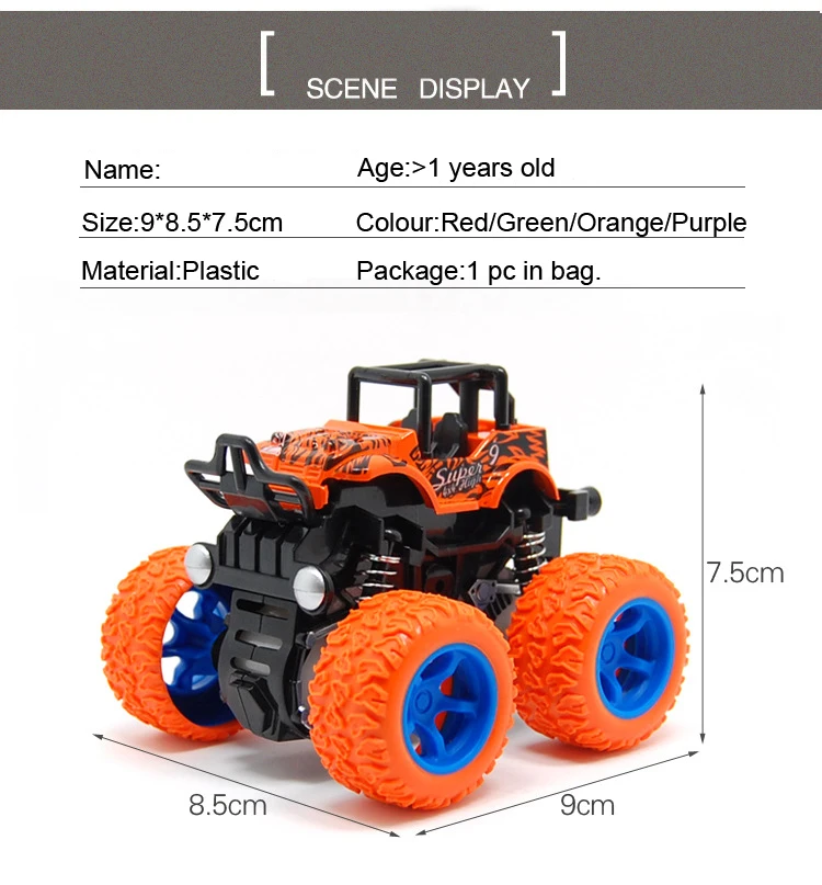 Товар: инерционный внедорожный автомобиль Материал: Пластик 4 цвета: красный, фиолетовый, оранжевый, зеленый Пол: унисекс Управление метод: инерции Возрастной диапазон:> 3 лет Размер: 9x8,5x7,5 см/3,5x3,3x3,0 дюйма Количество: купальное полотенце, 1 шт Особенности: Мини пластиковый корпус, устойчивый к падению. Инерционное движение и необычное вращение, ударопрочный. Может быть предоставлен в качестве хорошего подарка детям. Содержание упаковки: 1 х инерционный внедорожный автомобиль