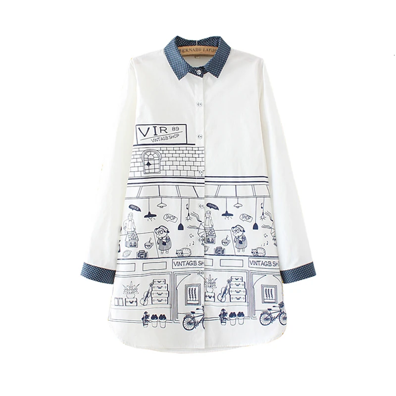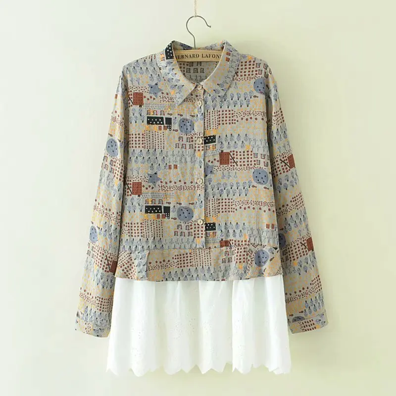 Плюс размер XXXL Вит Gedrukt Vrouwen блузки Sprin Zomer Lange Mouw топлинейная блузка рубашка Vrouwen блузки большого размера FemininaТакже есть $./Стук