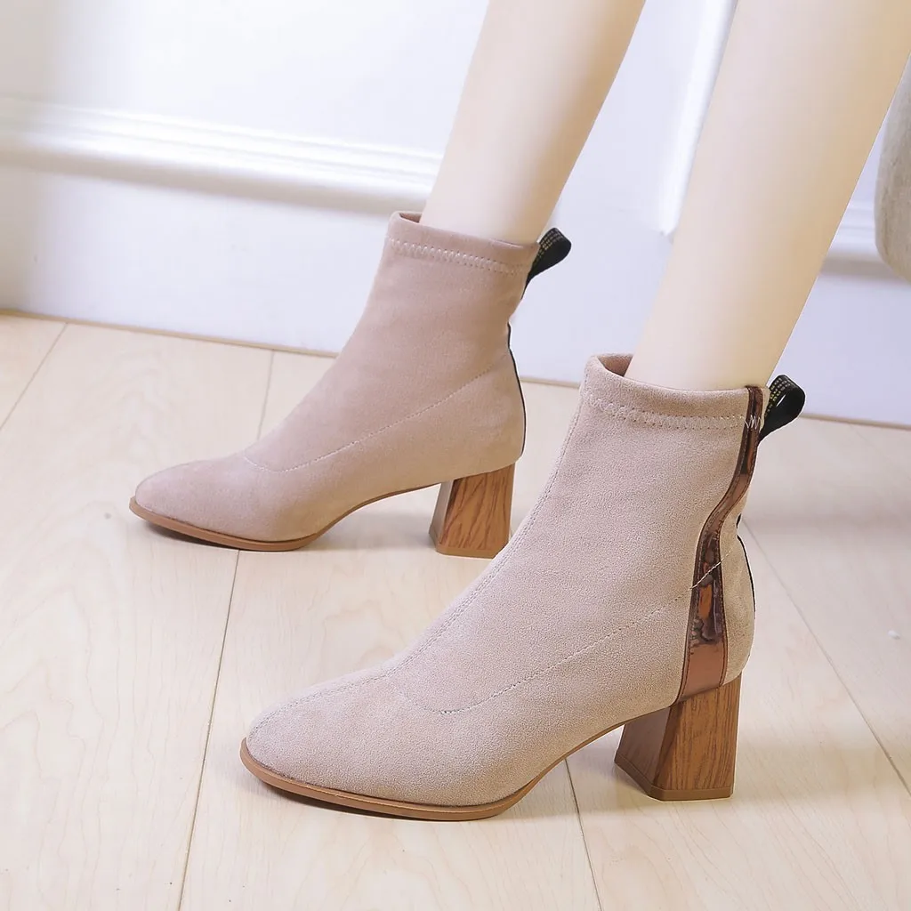 Женские Модные полусапожки на квадратном каблуке; носки с ворсом без застежки; мягкая обувь