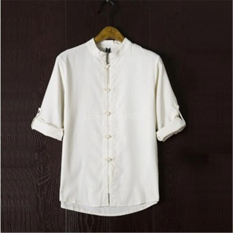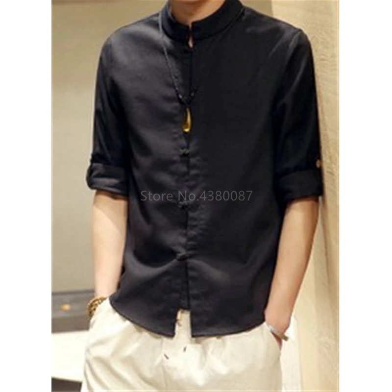 Мужская Летняя Китайская традиционная рубашка в стиле ретро, Однотонная рубашка с коротким рукавом, Восточная китайская одежда, Kungfu Tang костюм для мужчин