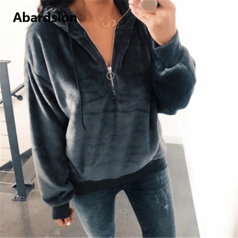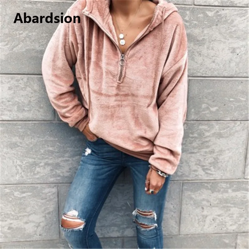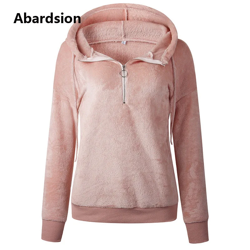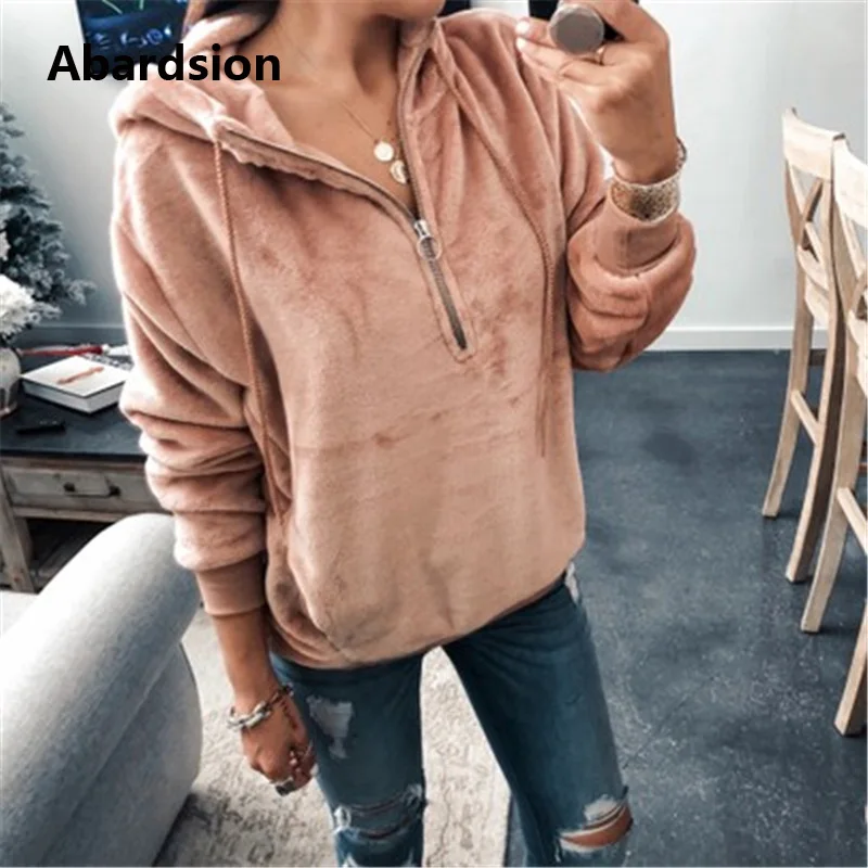 Abardsion 2019 Повседневная Harajuku велюровая Толстовка женские осенне-зимние толстовки Женский Пуловер розовый на молнии толстовки с капюшоном