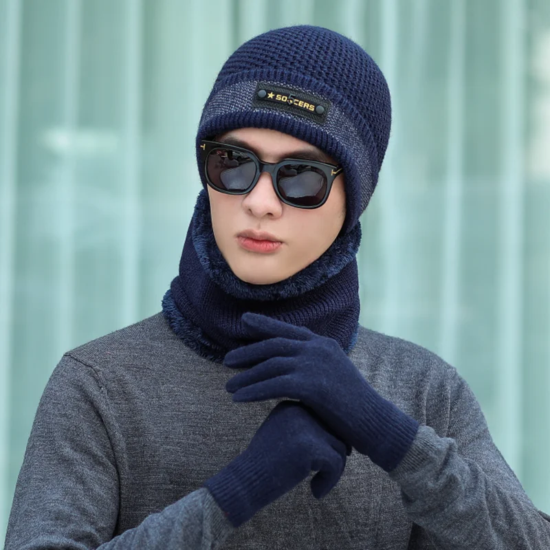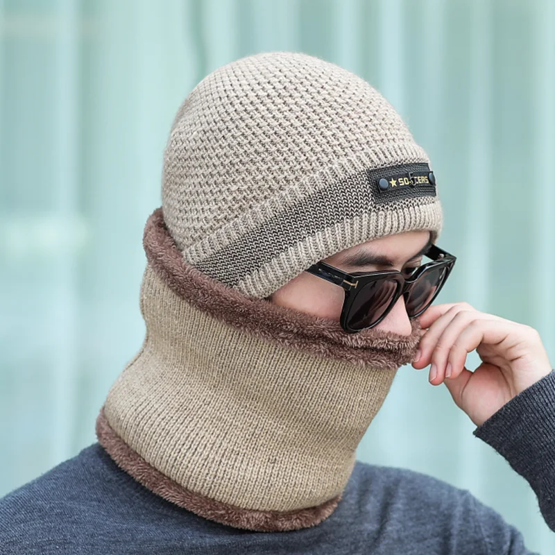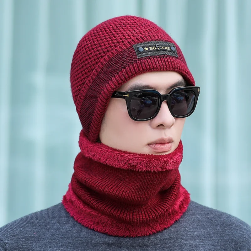 Однотонная вязаная шапка Мужская Шапка бини зимняя теплая шерстяная в стиле хип