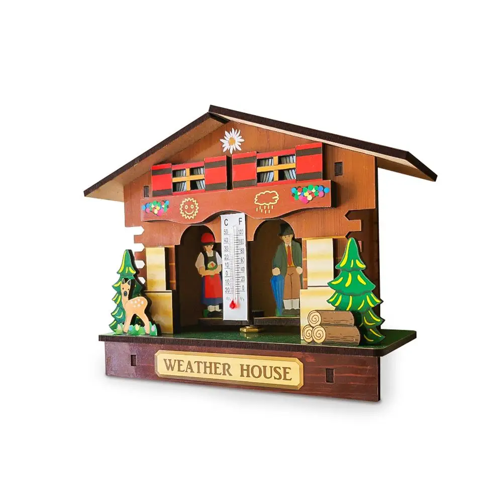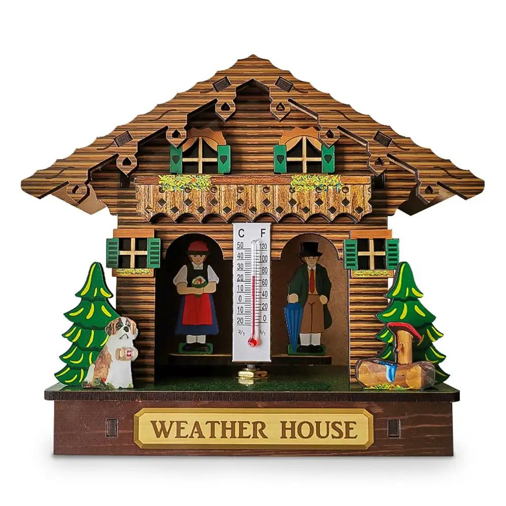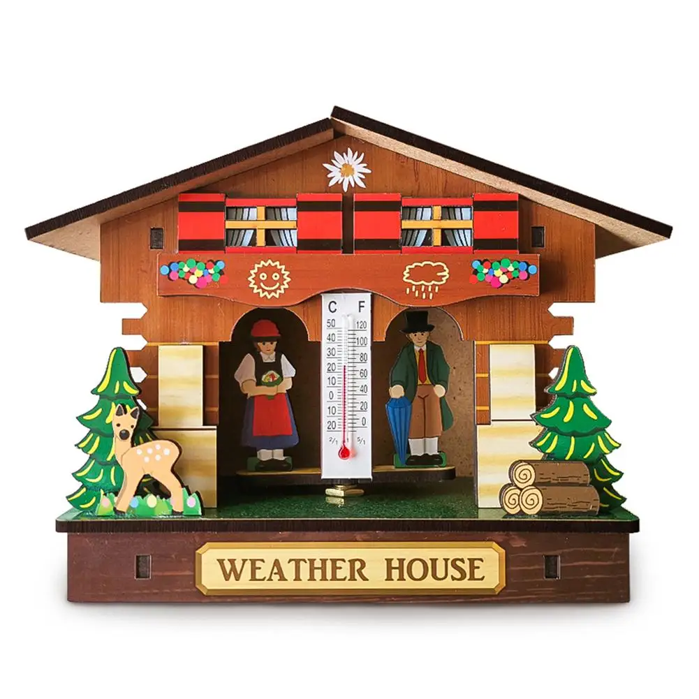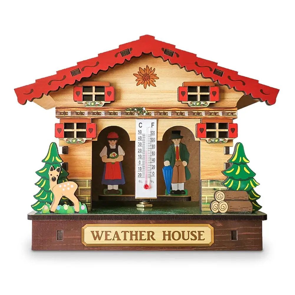 1. Дом погоды: это очень интересный термометр и гигрометр. Есть две двери, стоящие между мужчинам и женщинам. Также между дверями Имеется небольшой термометр для отображения температуры в °C и °F.
