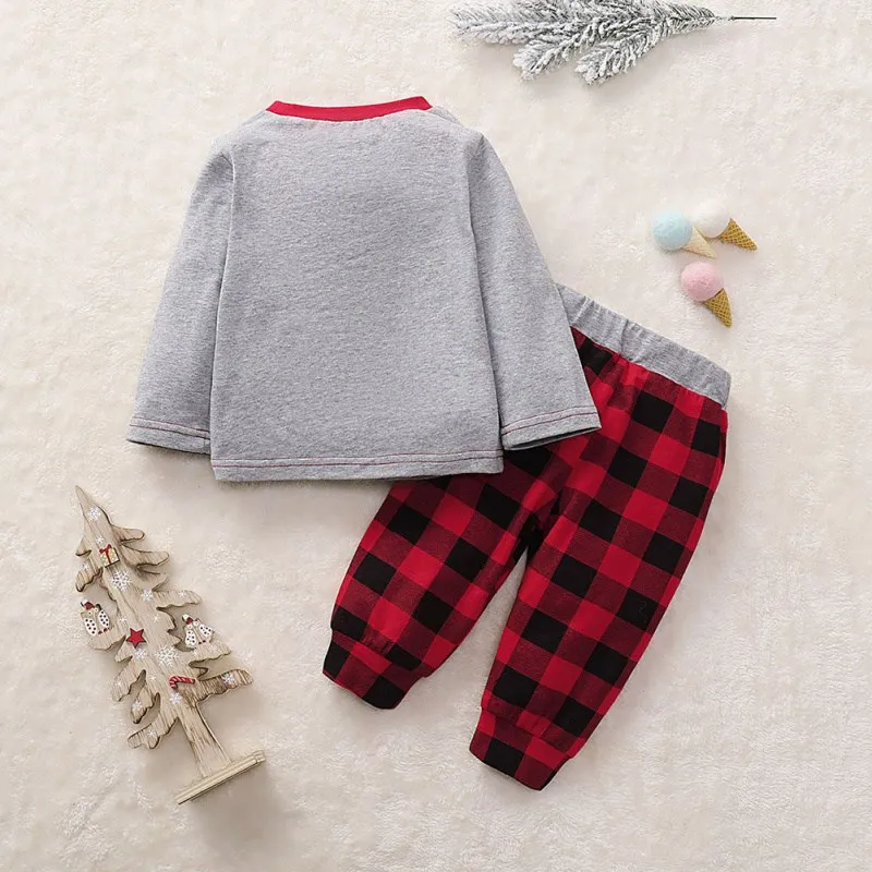 Одежда для маленьких мальчиков и девочек зимние топы с длинными рукавами и рисунком + штаны в клетку детская Рождественская одежда новогодние костюмы для детей