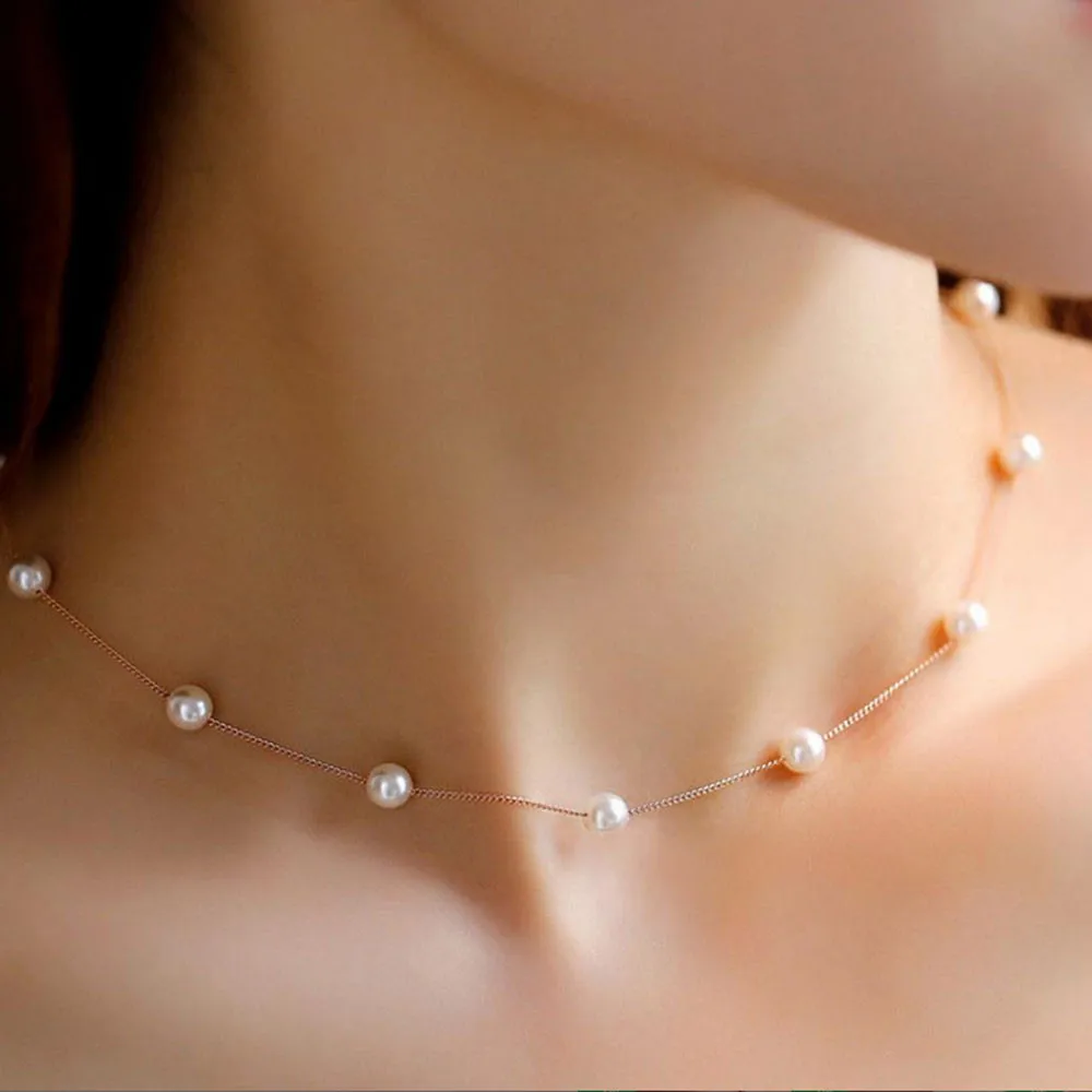 Женское короткое ожерелье с жемчугом, однослойная цепочка, аксессуары