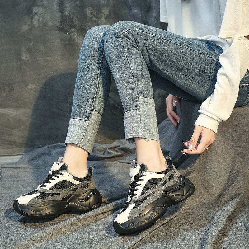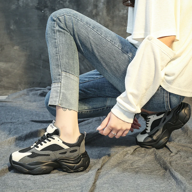 Кроссовки женские на платформе и высоком каблуке кожаные белые модные теннисные