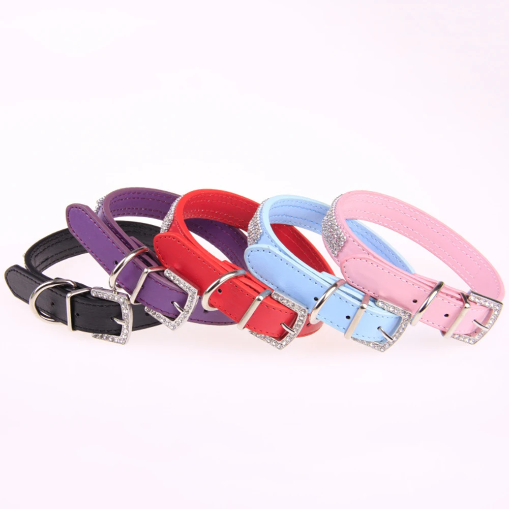 Регулируемые шикарные Собачьи Ошейники со стразами, искусственная кожа, ошейник для питомца, щенка, кошки, ошейник, товары для домашних животных