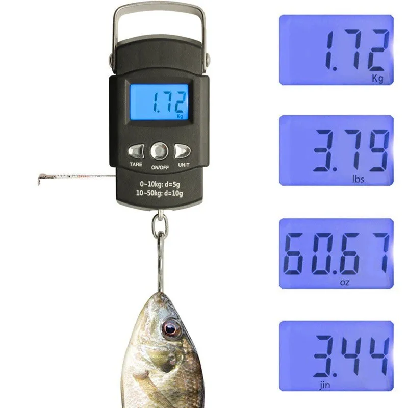 Кухонные портативные весы 50 кг, цифровой экран для рыбалки