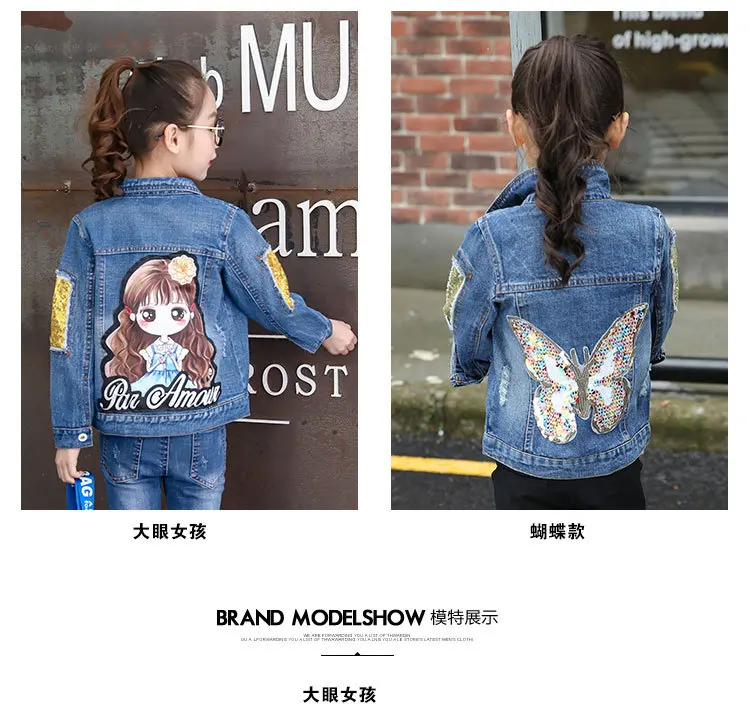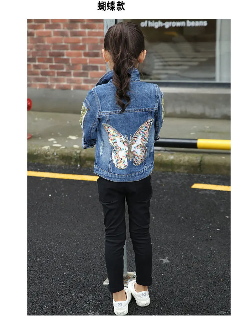 Джинсовая осенняя куртка для девочек стильный пиджак на пуговицах верхняя одежда для детей от 13 лет, оптовая продажа, детская одежда синяя бабочка
