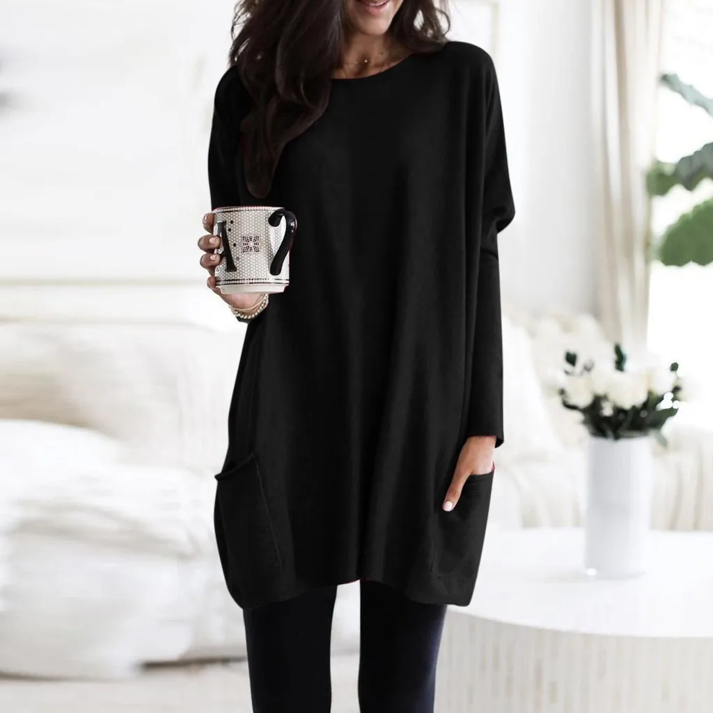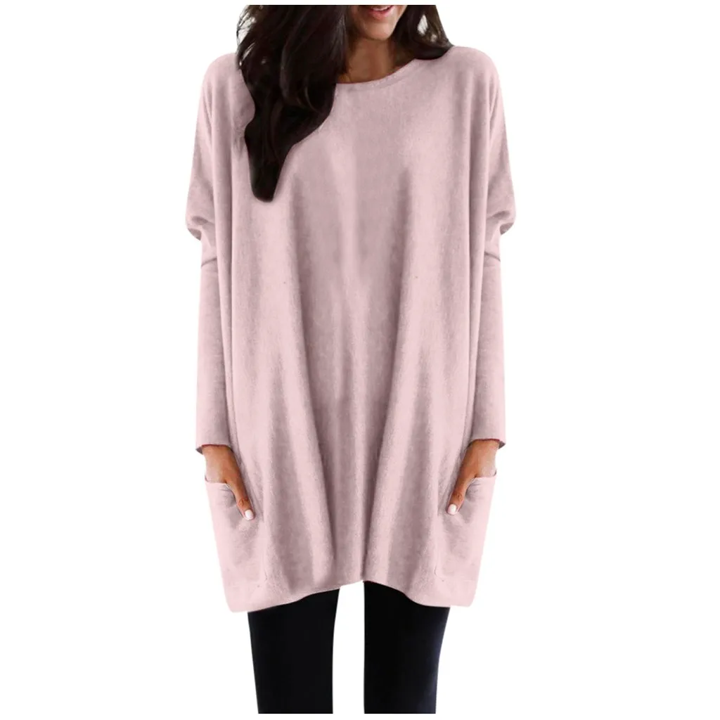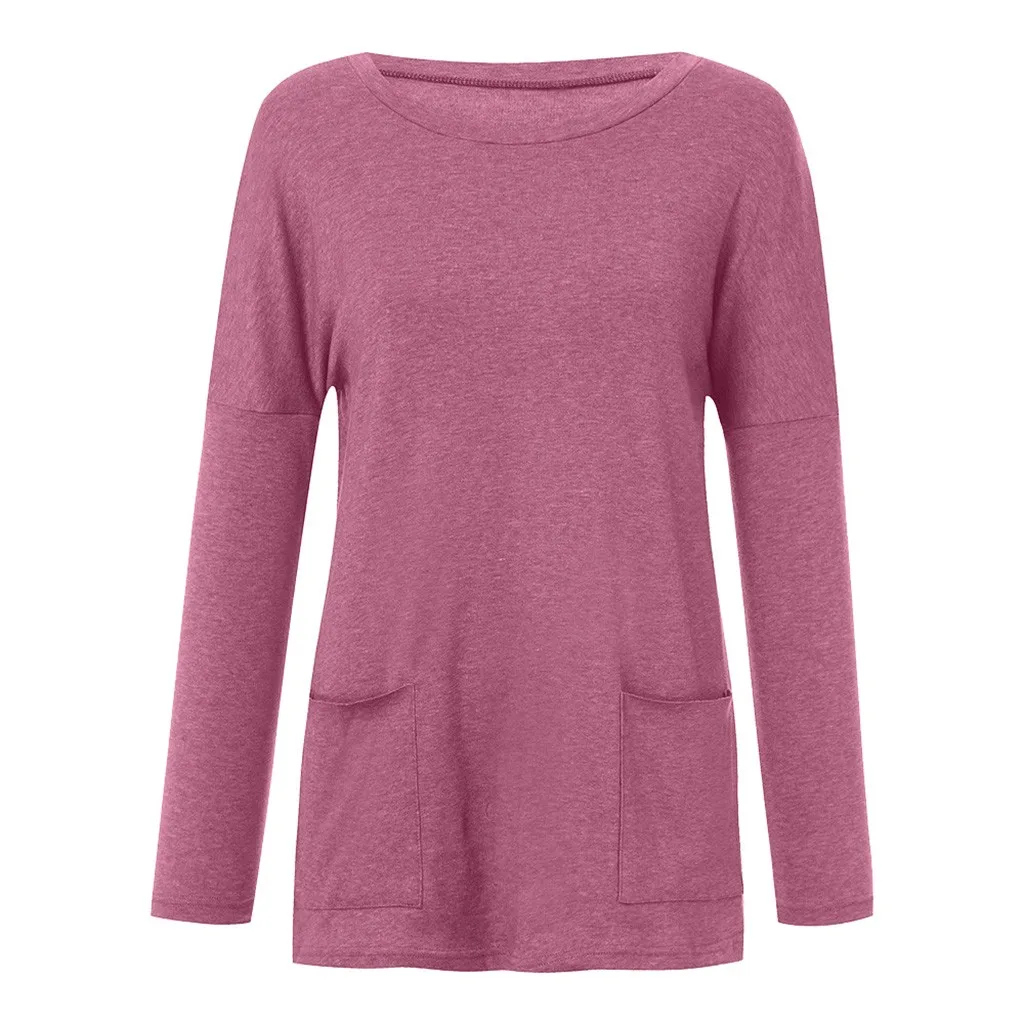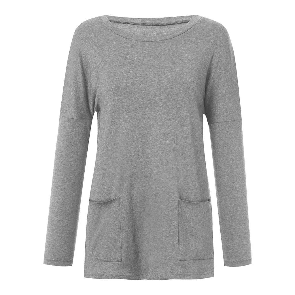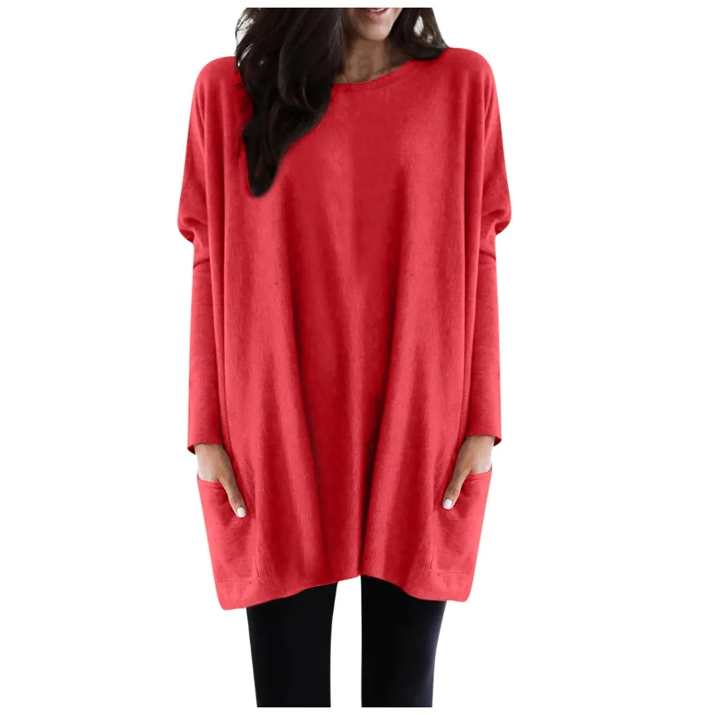 Женские блузки и топы размера плюс 5xl с карманами, Однотонный свитер с длинным рукавом, Свободный Длинный пуловер, топы, блузки 9 цветов # YL5