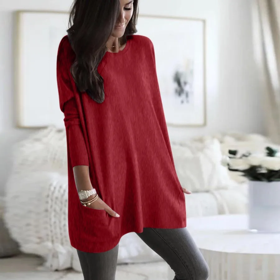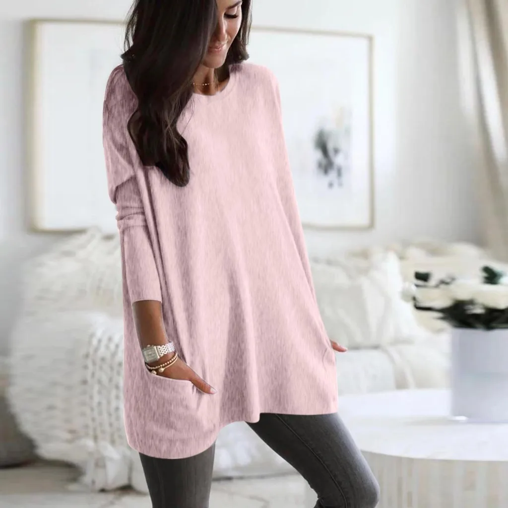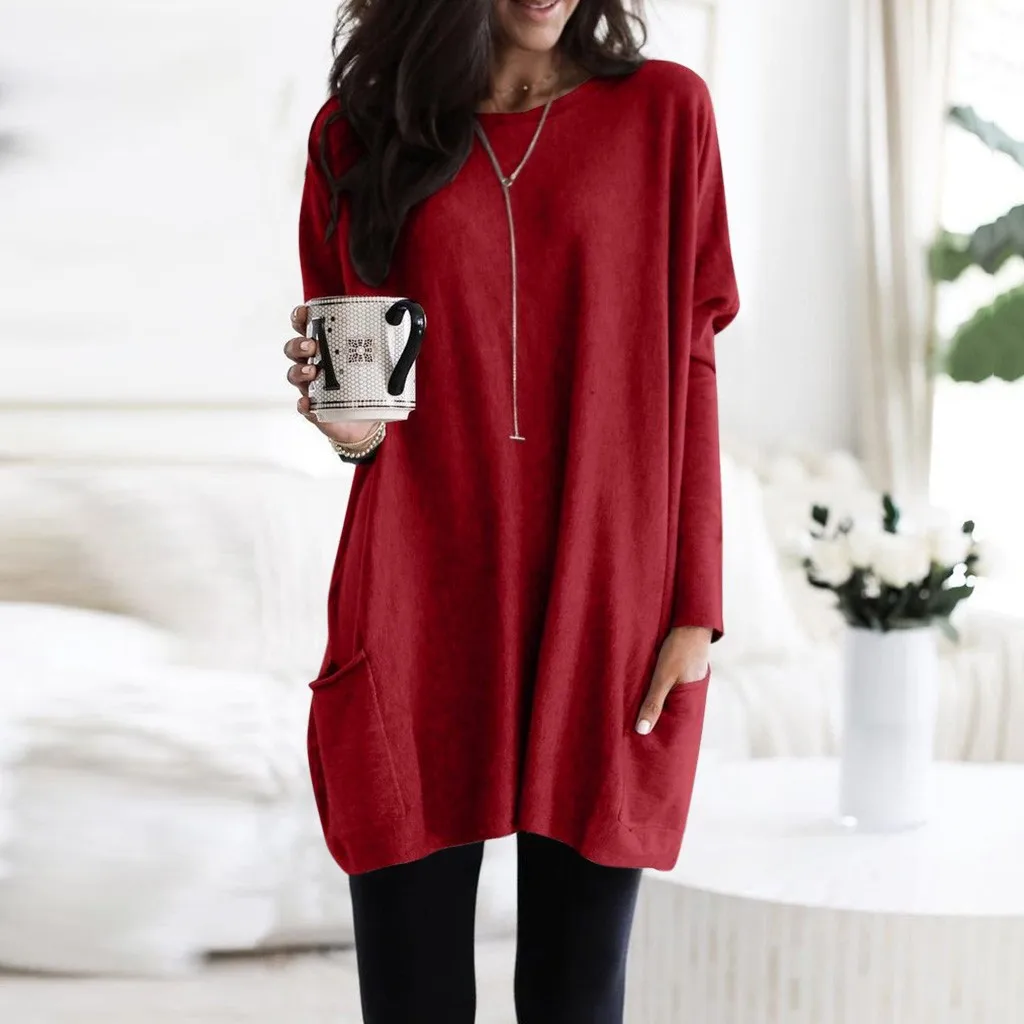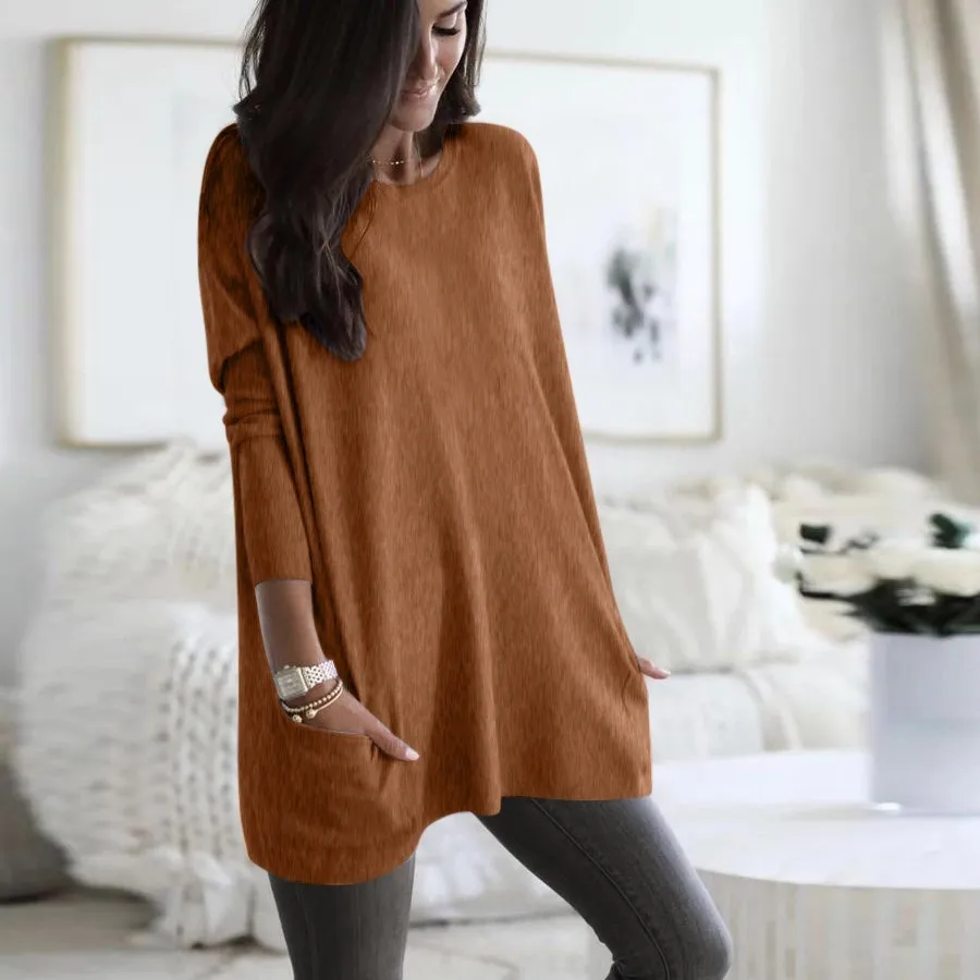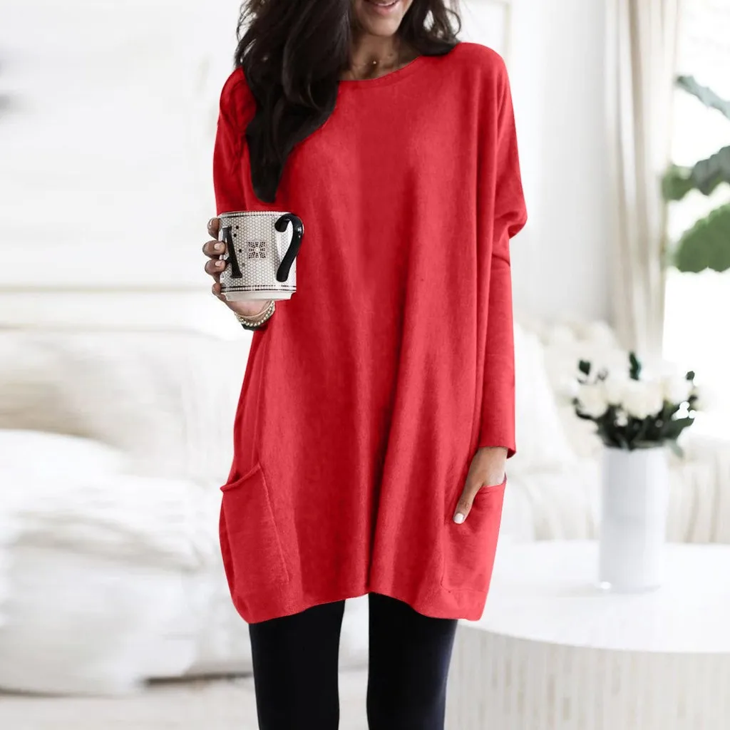 Женские блузки и топы размера плюс 5xl с карманами, Однотонный свитер с длинным рукавом, Свободный Длинный пуловер, топы, блузки 9 цветов # YL5