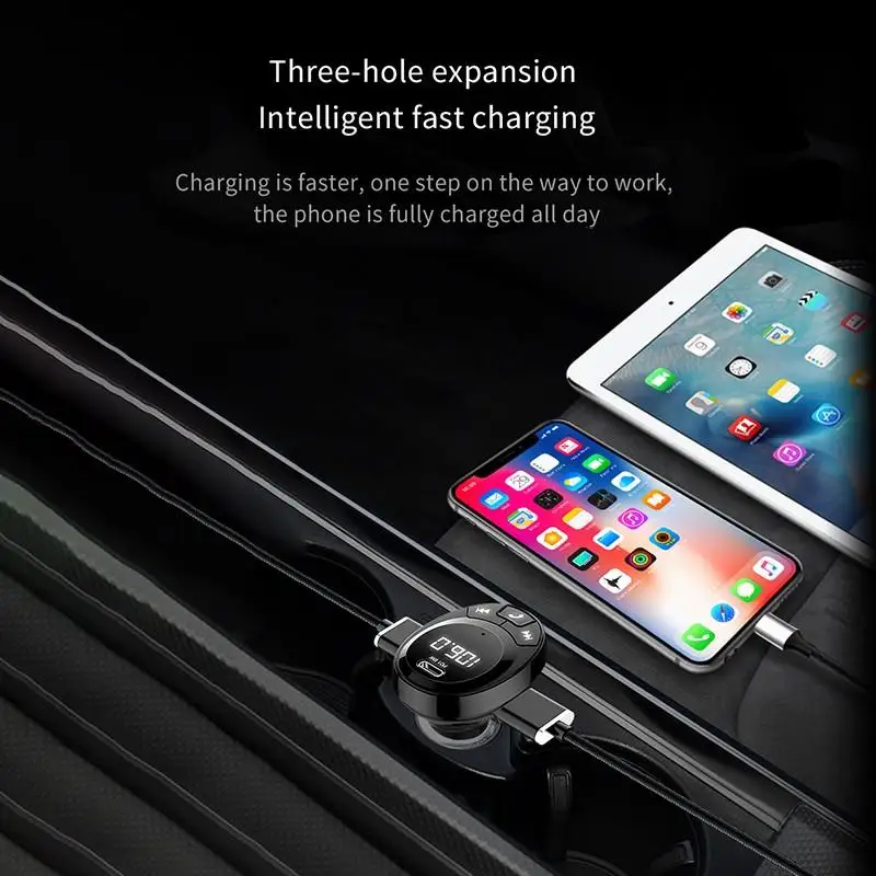 Автомобильный fm-передатчик с Bluetooth 5,0, fm-модулятор, аудио mp3-плеер с 3 режимами воспроизведения, два USB Type-c автомобильного зарядного устройства, свободные руки