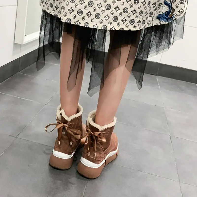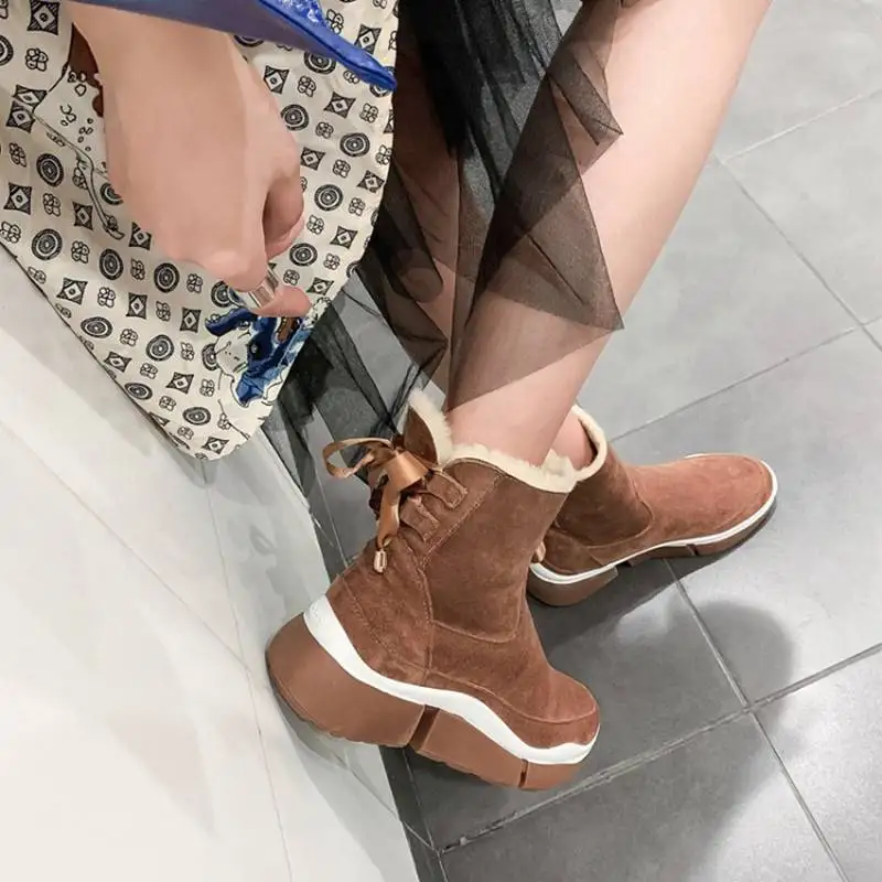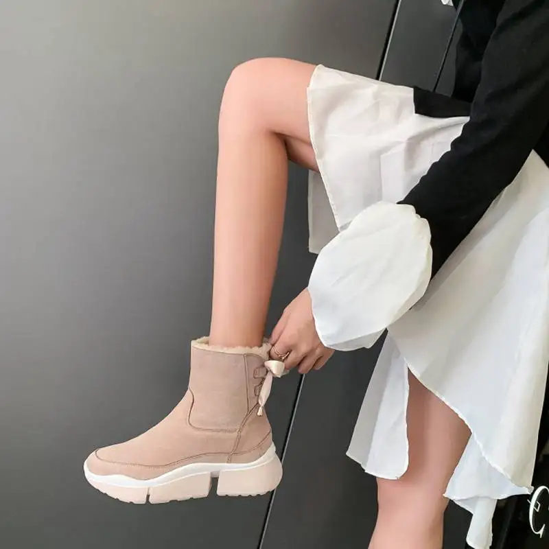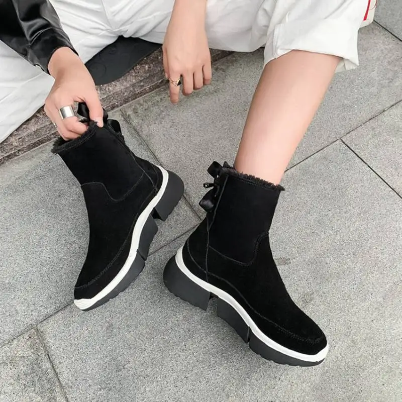 NEMAONE/Большие размеры 34 43 Модные теплые зимние сапоги с пряжкой и мехом Женская