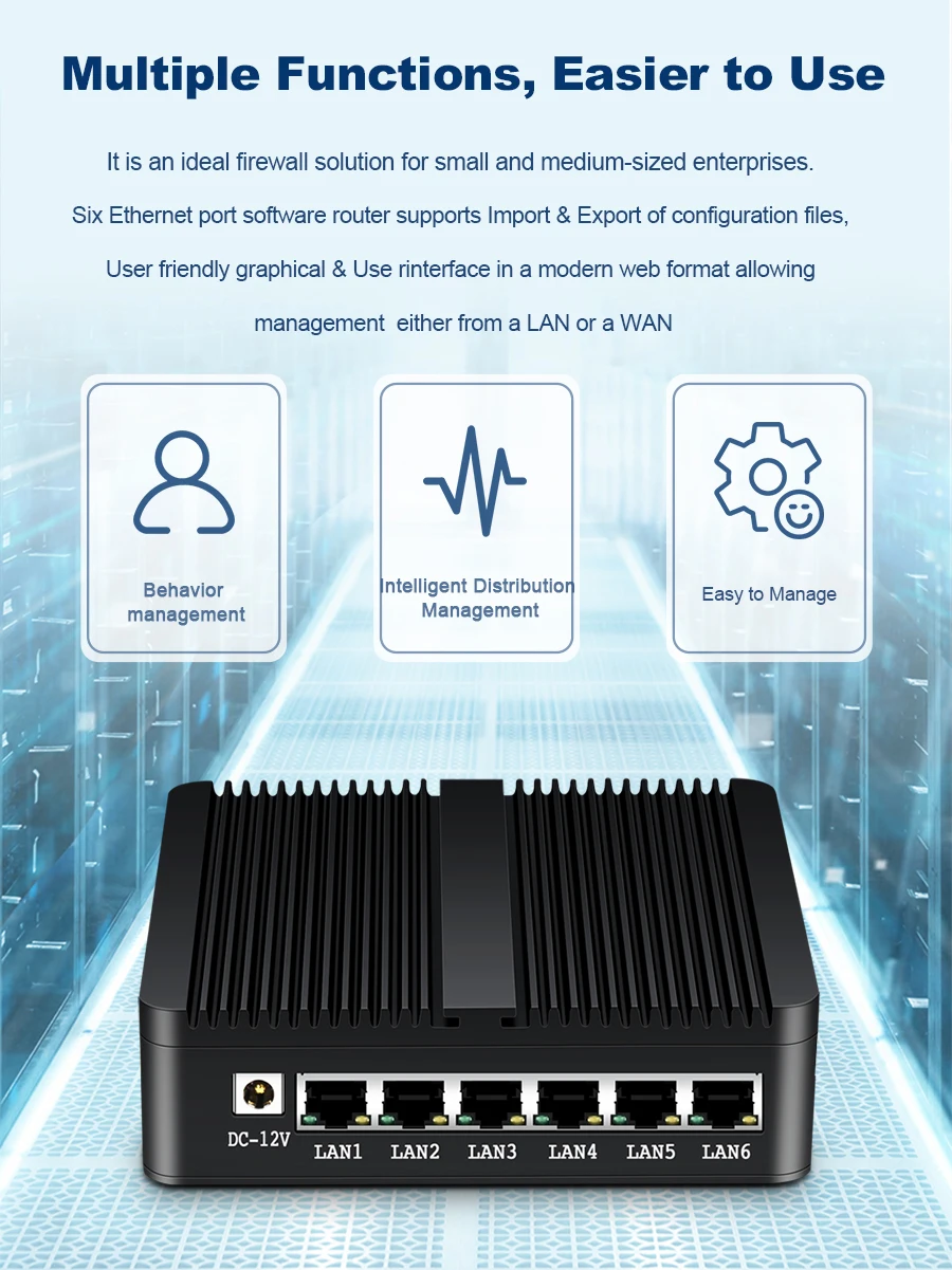 -Интерфейсов С 6x LAN Intel 211AT 10/100/1000 Мбит/с, 1x USB 3,0, 1x USB 2,0, 1x HDMI, 1x COM ( RJ45 для RS232 консоль);