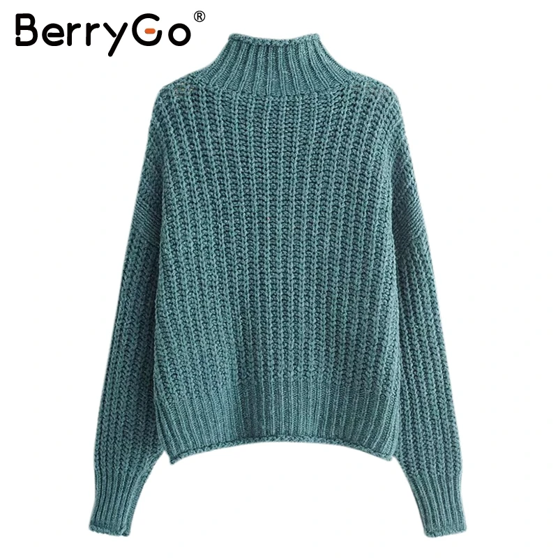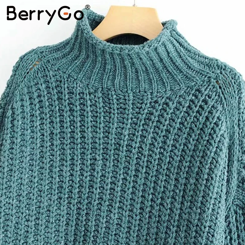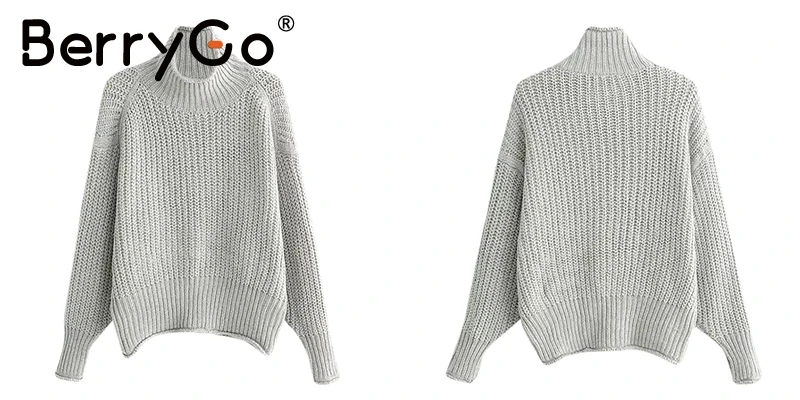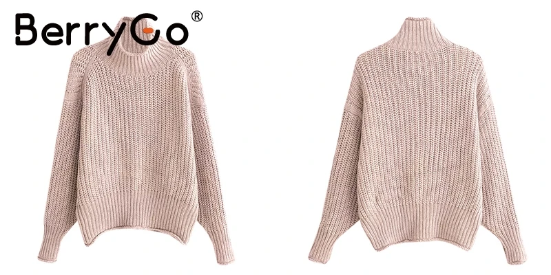 BerryGo водолазка однотонный пуловер свитер женский Осень Зима летучая мышь ЛонЖенский свитер с рукавом g, повседневный женский джемпер большого размера