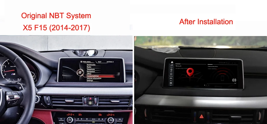 BMW X5 F15 2014-2017 оригинальная система NBT Примечание. 1. Автомобиль должен иметь функцию AUX 2. Прежде чем сделать заказ, пожалуйста, проверьте оригинальный стиль меню экрана и разъем LVDS, чтобы подтвердить оригинальную систему автомобиля