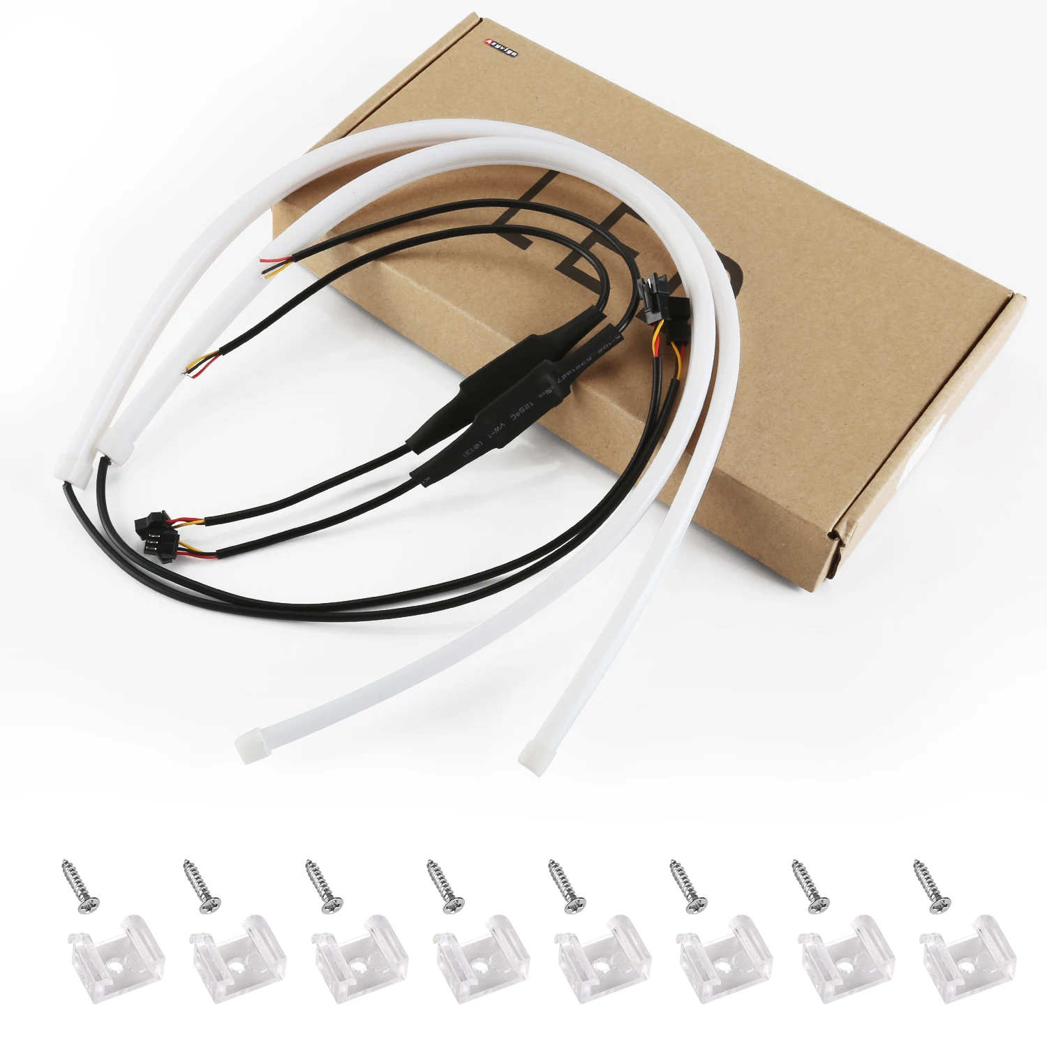Этот новый гибкий трубчатый светодиодный переключатель предназначен для фар Audi Style effect. Использует мощный SMD-светодиод в полосе. Используется для множество других дизайнов освещения. 12 вольт постоянного тока можно подключить к существующим автомобильным фарам или другим проектам.