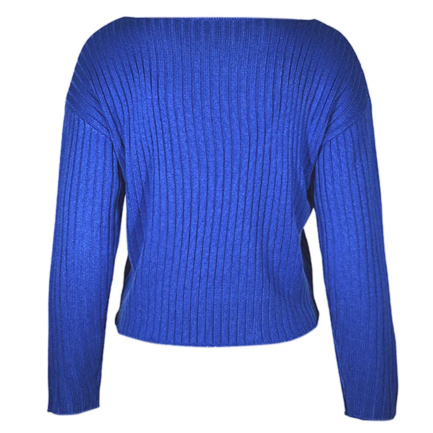 Женская мода Зимний вертикальный вязаный полосатый круглый вырез сплошной цвет свитер