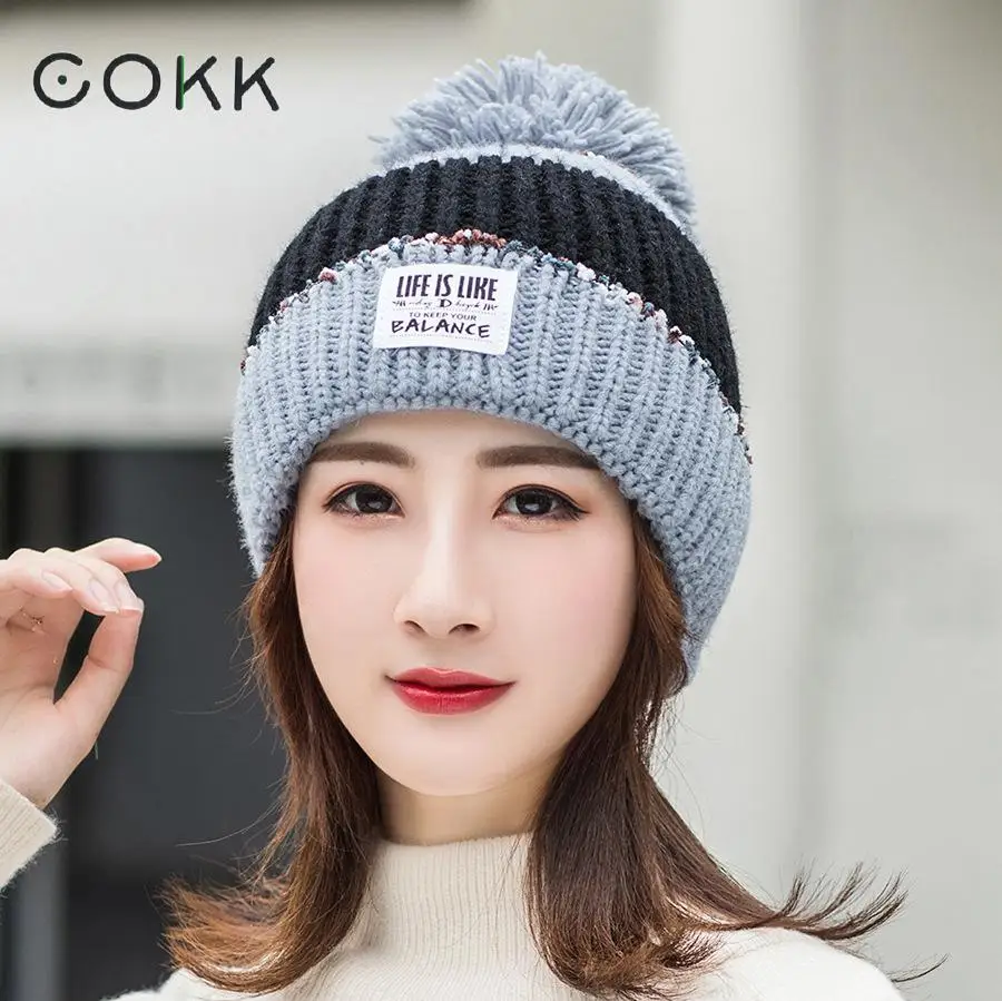 Название позиции: COKK 2019 новые зимние шапки для женщин, женская утолщенная бархатная Защитная шапка с помпоном, цветная вязаная шапка, шапочка Особенности: Стиль: Шапка-бини Материал: акрил Окружность шапки: 56-58 см