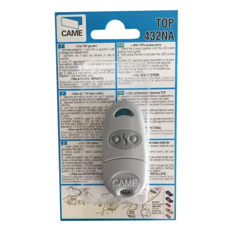 The Come TOP432NA remote-это пульт дистанционного управления для управления автоматизацией и электрификацией порталов и гаражных ворот. Серая упаковка программируется путем самостоятельного обучения.