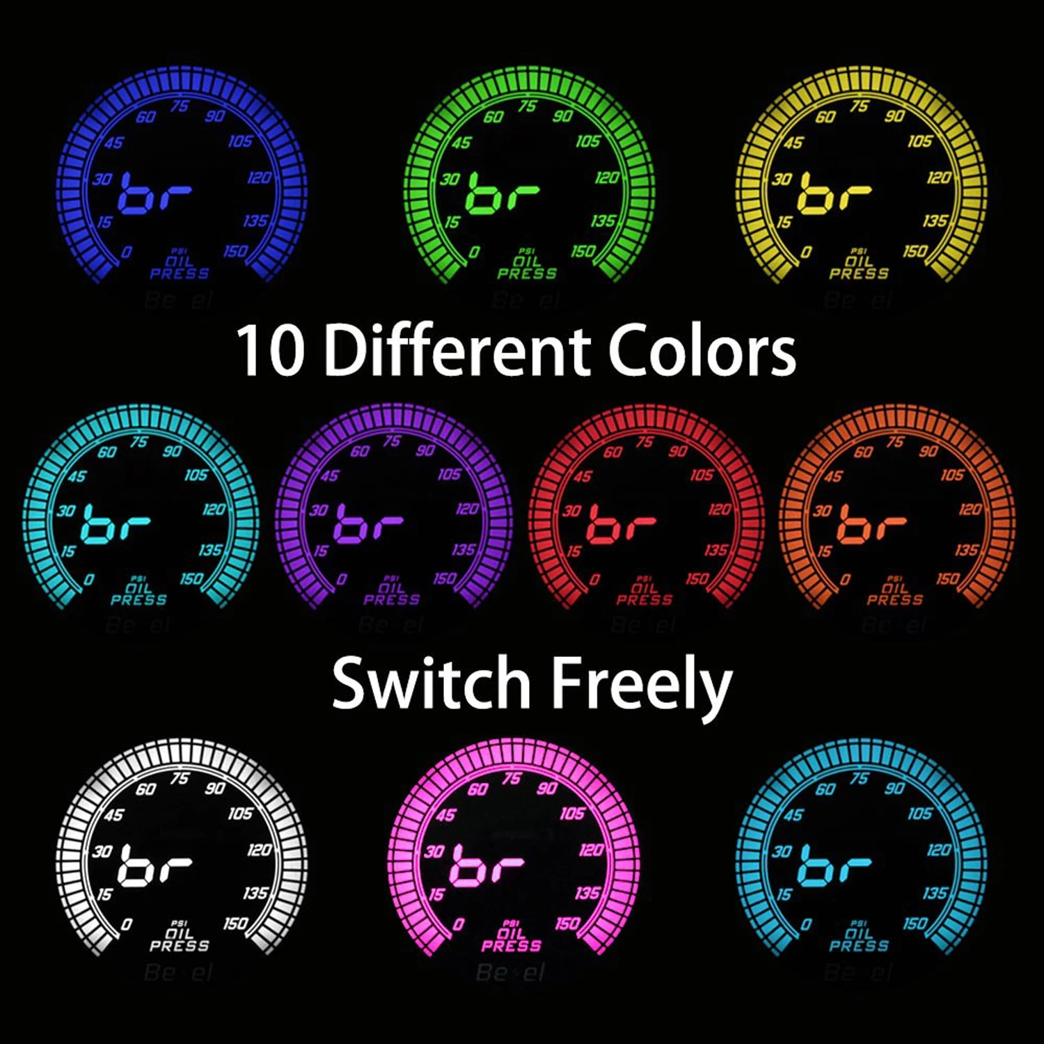 Циферблат 270 ° обеспечивает быструю точность одного взгляда. Трековые испытания и гонки эти датчики используют прецизионные электрические датчики (в комплекте), чтобы держать опасные жидкости из пассажирского салона. Этот датчик отключен. Этот датчик может отображать 10 цветов и с регулируемой яркостью!