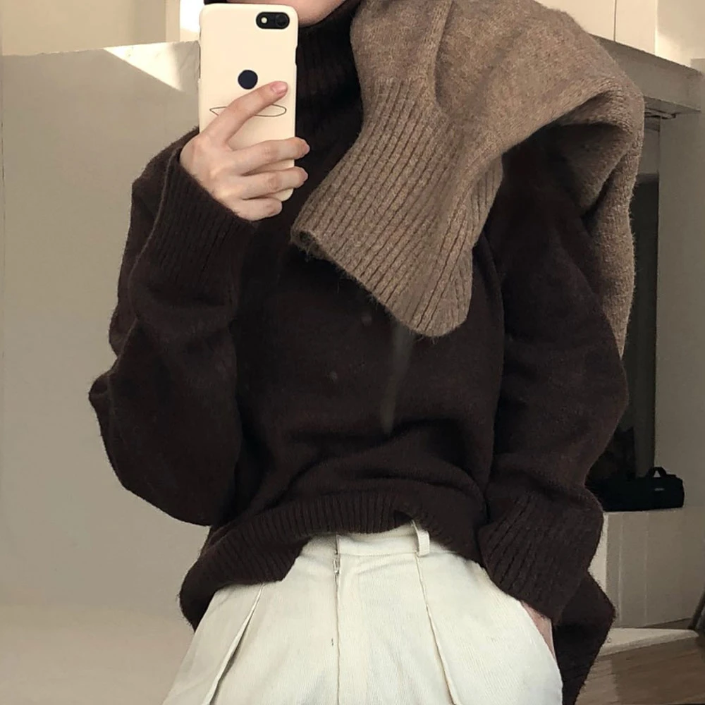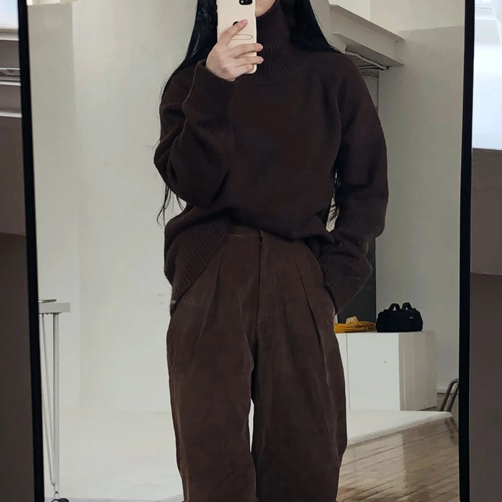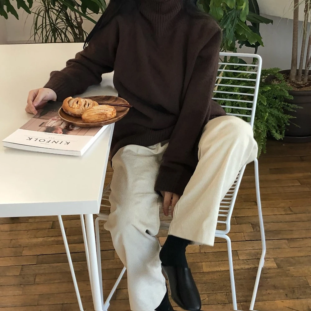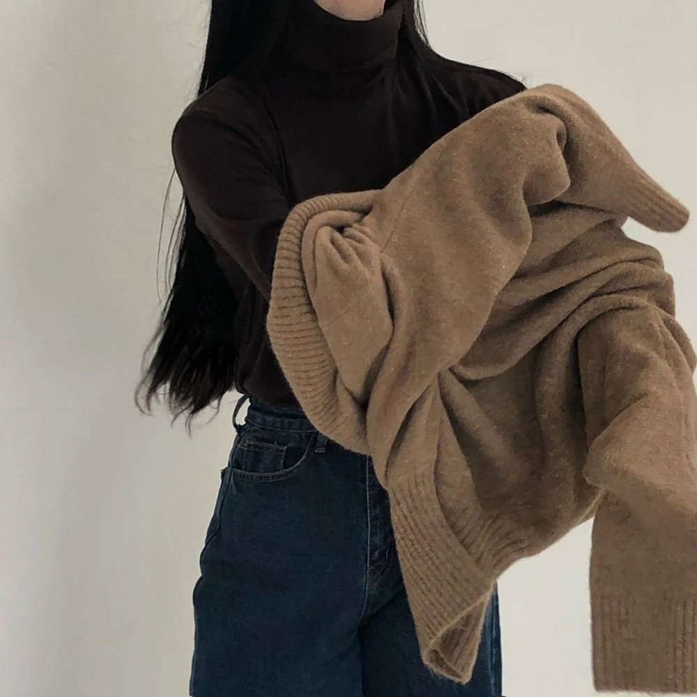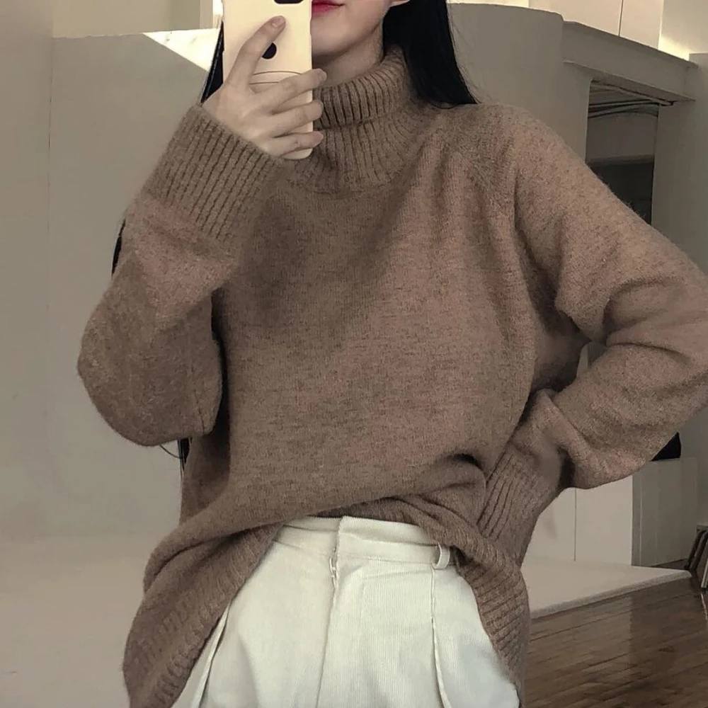 2019 Ins Winter New Arrival Women's Pullovers Solid Sweater Fashion Turtleneck Full Sleeve Loose Casual Knitted Sweater C90308K