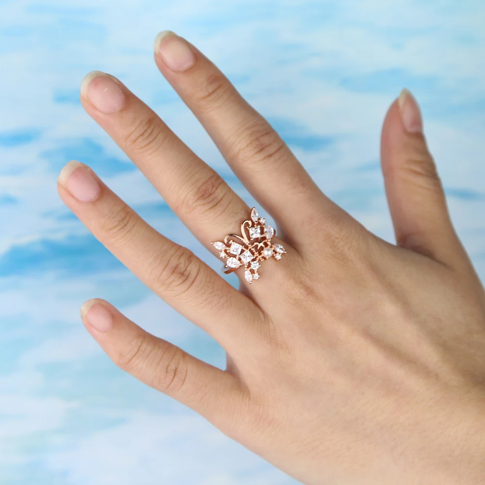 Кольца с бабочками, жемчужные стразы, золотые кольца для женщин, обручальные кольца для свадебной вечеринки, Женское кольцо на палец, модные ювелирные изделия, anillos