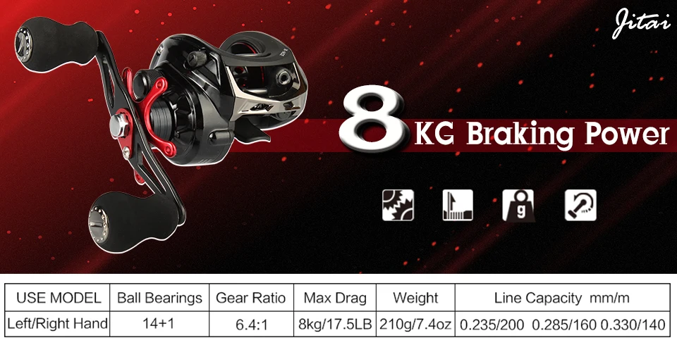 ☆Гладкая и прочная-Передаточное отношение 6,4: 1 с усиленной латунной шестерней, обработанной на станке с ЧПУ, обеспечивает катушке baitcast прочную систему сопротивления и долговечность. Быстрое и мощное извлечение обеспечивает максимальную производительность рыбалки. ☆Динамическая-блестящая кованая многофункциональная катушка из анодированного алюминия обеспечивает максимальную прочность при снижении веса. ☆Графитовый корпус и быстросъемная боковая крышка. ☆ 14 + 1BB бесшумные высококачественные экранированные Коррозионностойкие шарикоподшипники глубокой гонки. ☆Класс турнира-новые рыболовные катушки для наживки имеют новейшие тормоза с быстрым, простым в настройке надежным тормозом и магнитной тормозной системой для максимального контроля заброса.
