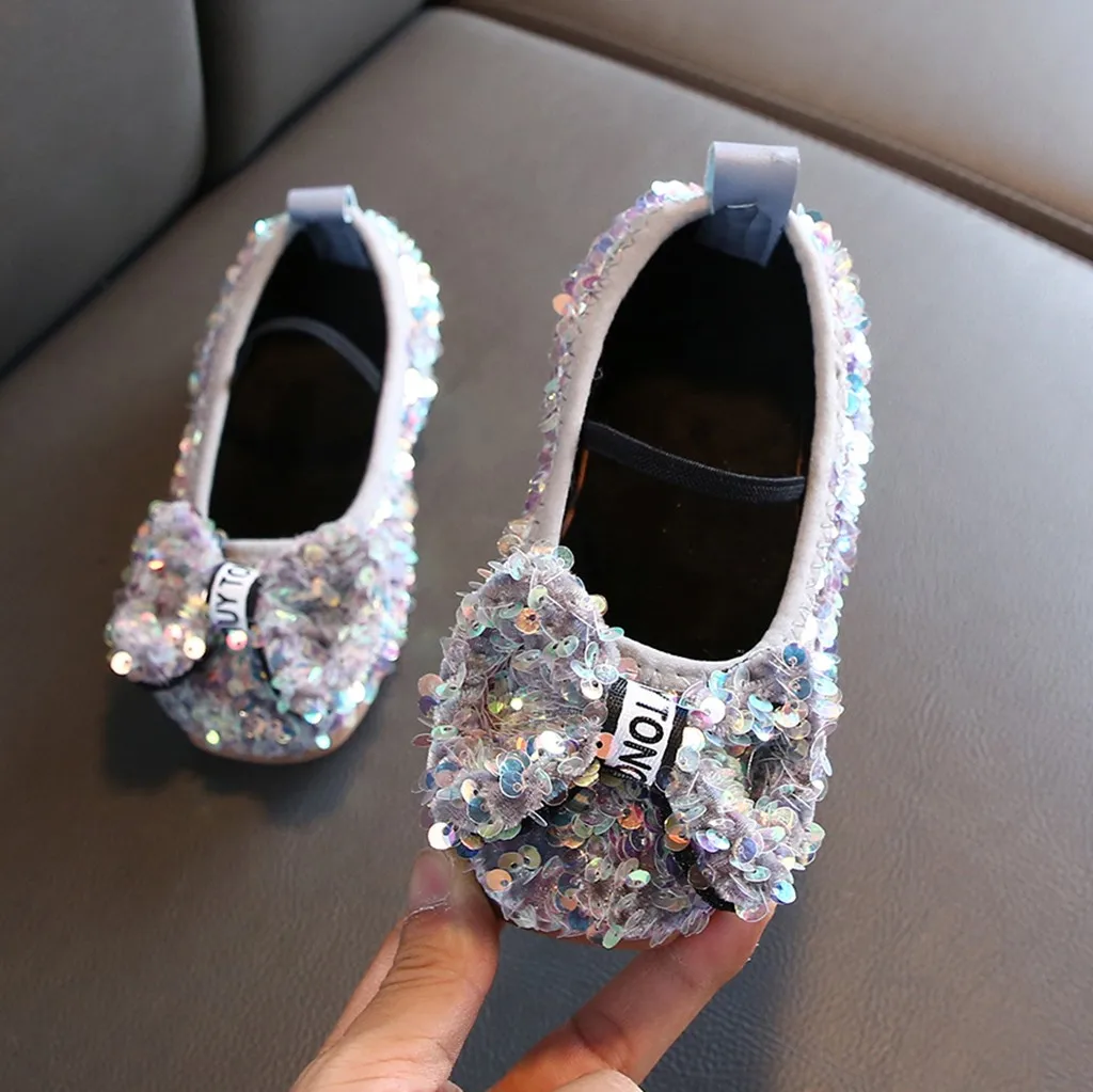 Детская одеждаОбувь принцессы с блестками и бантом для маленьких девочек