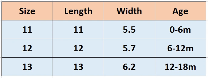 Таблица размеров: 11/12/13 (см/дюйм)