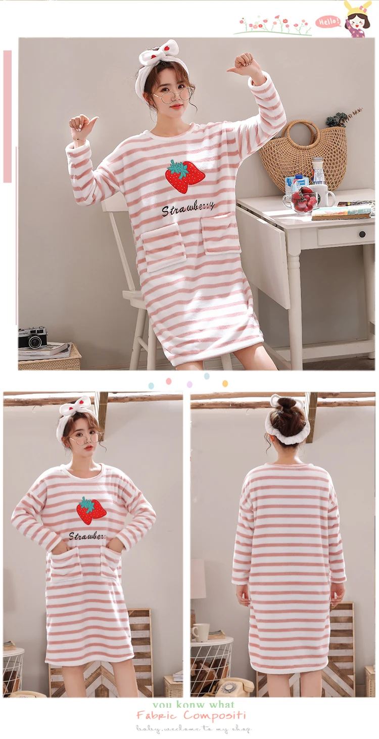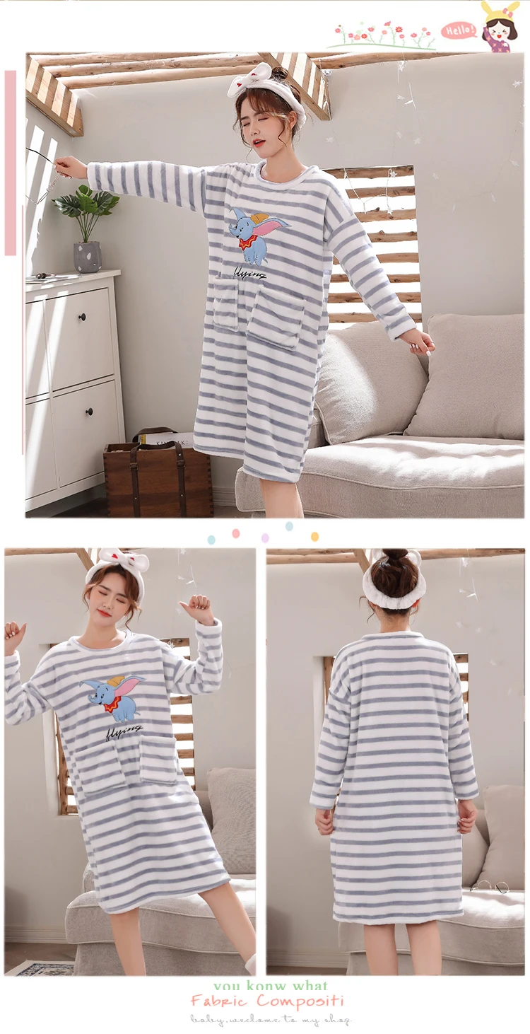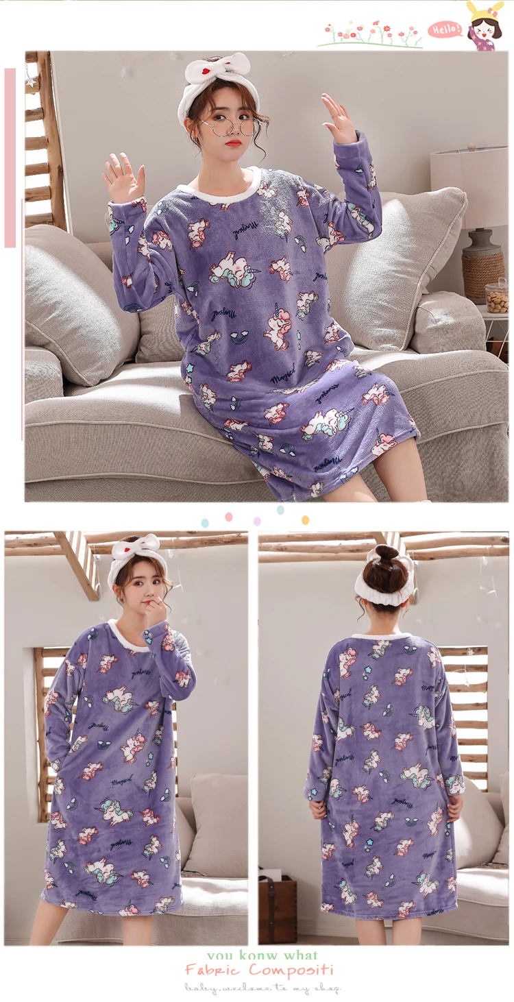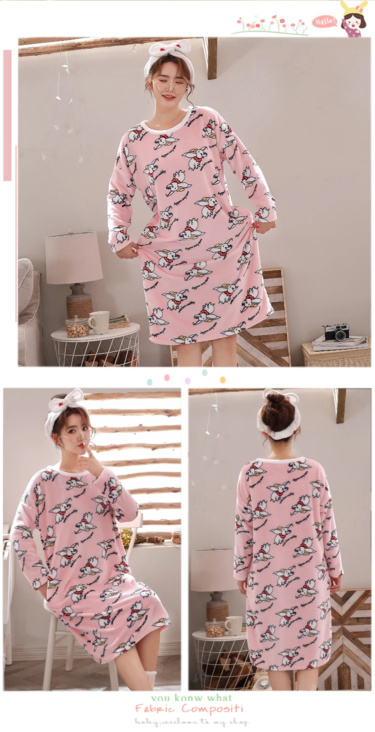 Женское Фланелевое Ночное платье с длинным рукавом, ночная рубашка кораллового цвета с принтом, ночная рубашка, зима 2019