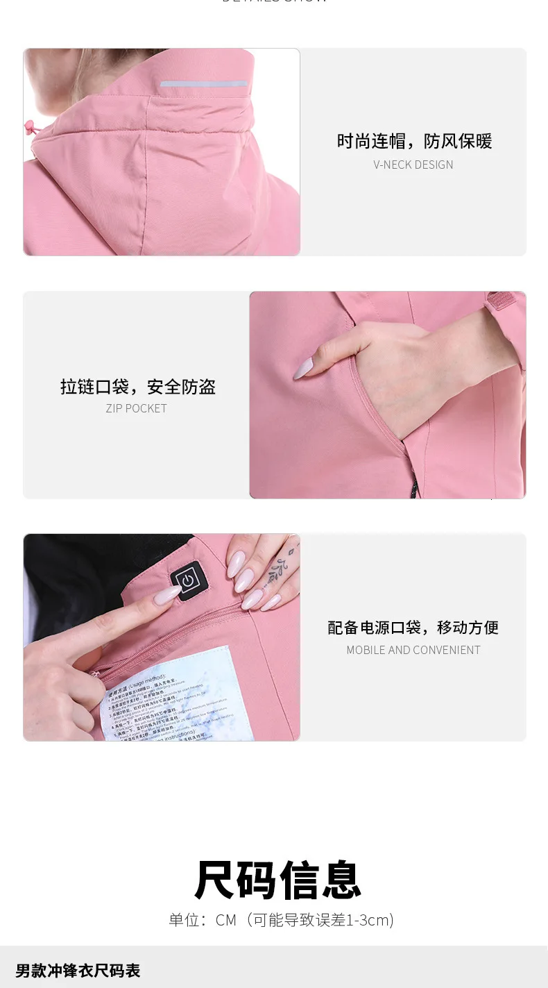 USB Heated Jacket Fibre Heating Hooded Coat Winter Men Women Waterproof Windproof Outdoor Camping Hiking Trekking Windbreaker