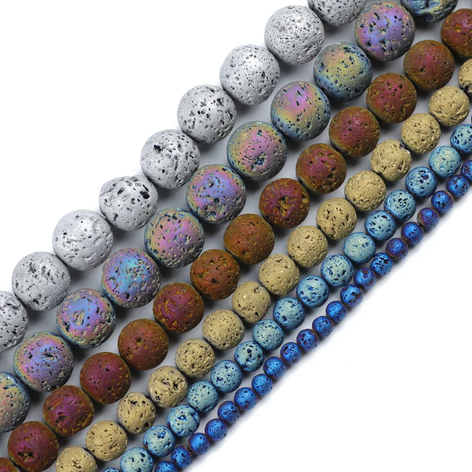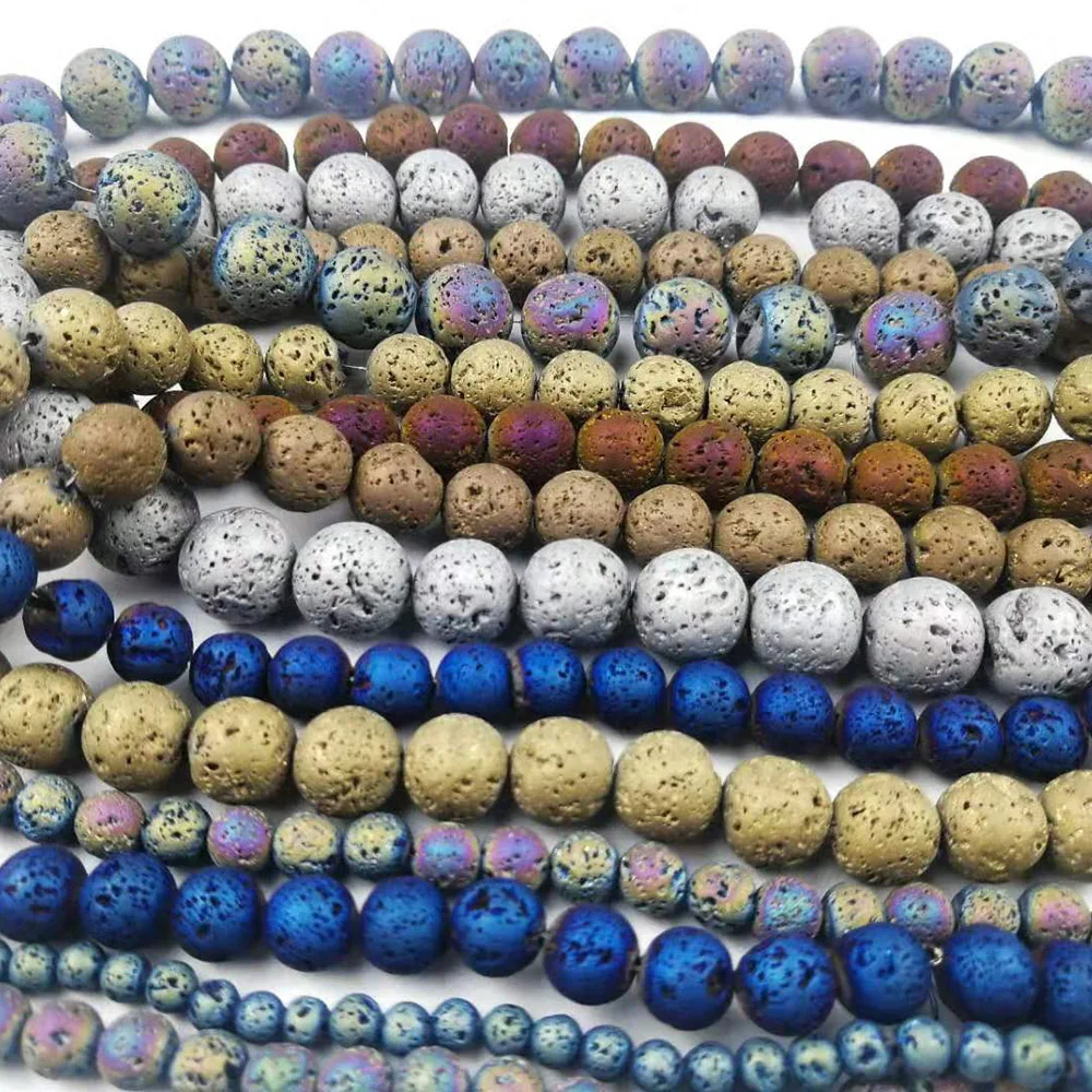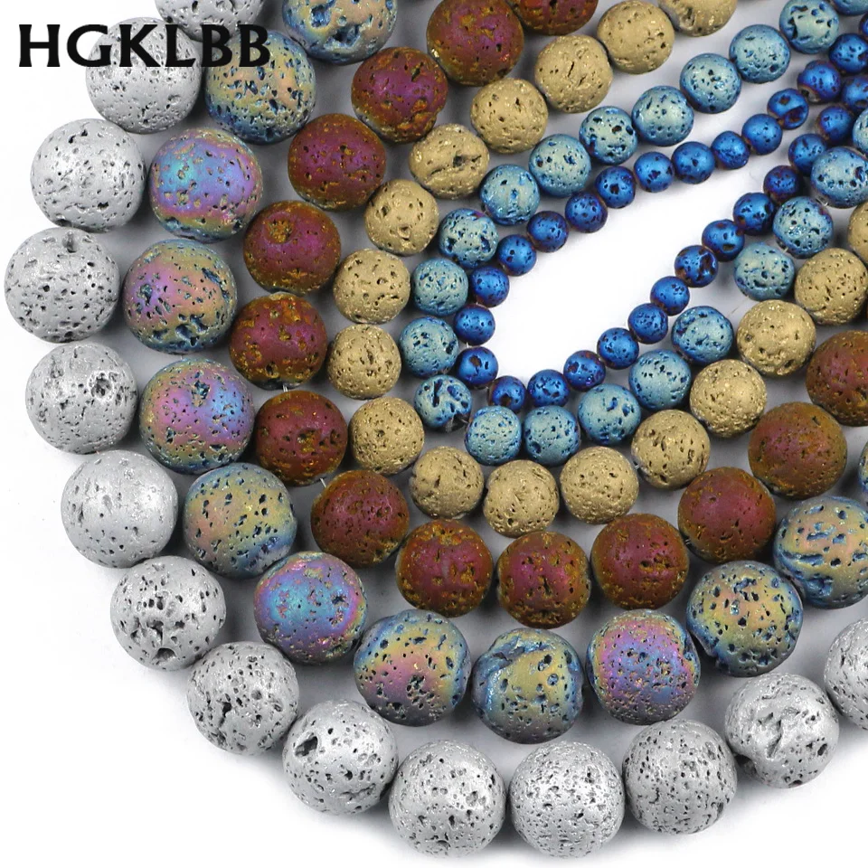 HGKLBB gold silve Purple plating Volcanic Lava Rock Natural Stone Round Loose beads Jewelry Making 4/6/8/10/12MM bracelets DIY