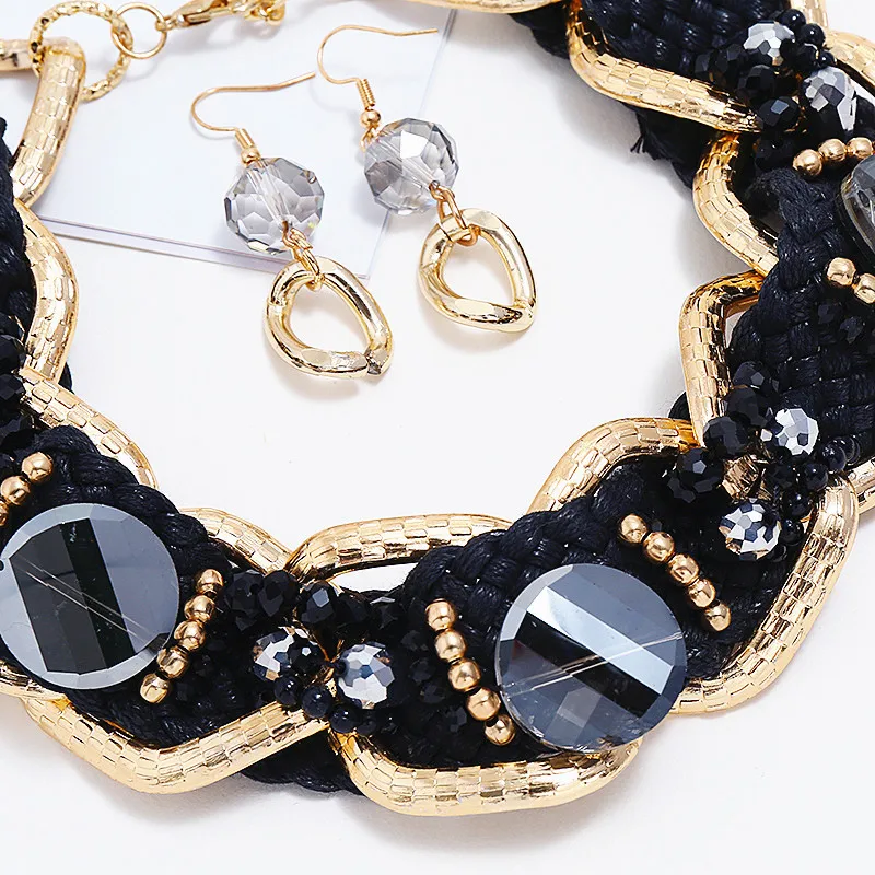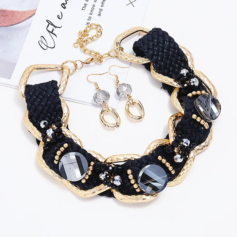 Африканские ювелирные изделия Большой сплав большая цепь Черный Кристалл Изысканные трендовые ожерелье серьги свадебный ювелирный набор хипстер женщина