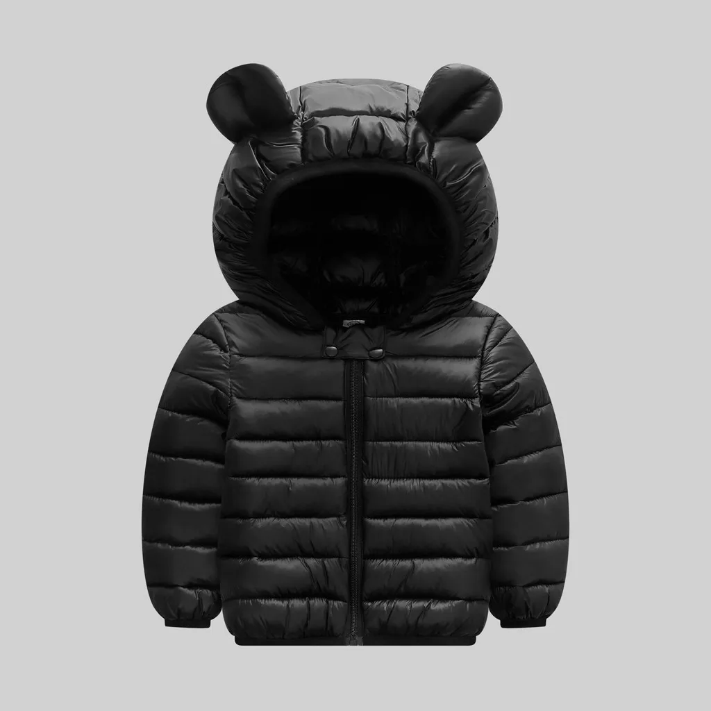 Детские зимние пальто для мальчиков и девочек; детская куртка на молнии с толстыми ушками; зимняя верхняя одежда с капюшоном