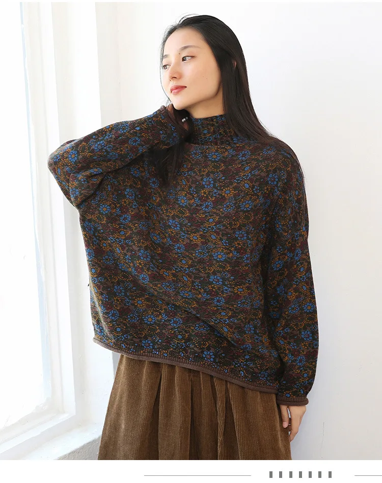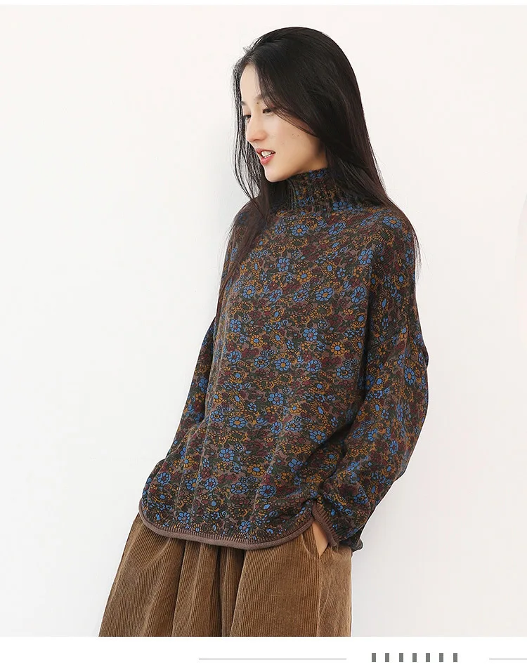 Свитер с высоким воротником с цветочным принтом большого размера