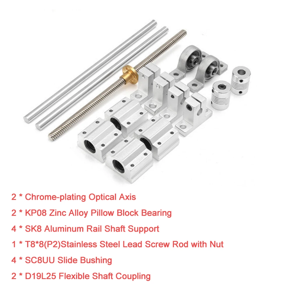 Комплект включает в себя оптические оси и свинцовые винты, корпуса, линейные направляющие кронштейны, шаговые муфты с ЧПУ и шариковые подшипники, полностью оборудованные для удовлетворения ваших потребностей. Изготовлено из высококачественных материалов, высокая износостойкость, низкое трение, высокая жесткость и длительный срок службы. В основном используется для промышленной автоматизации оборудования, шагового двигателя рельсы. Такие как 3D принтеры, гравировальный станок, модуль XYZ, слайд, подъемники и т. Д., широко используются. Вы можете попробовать.