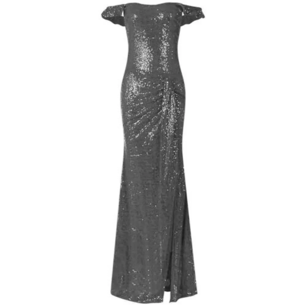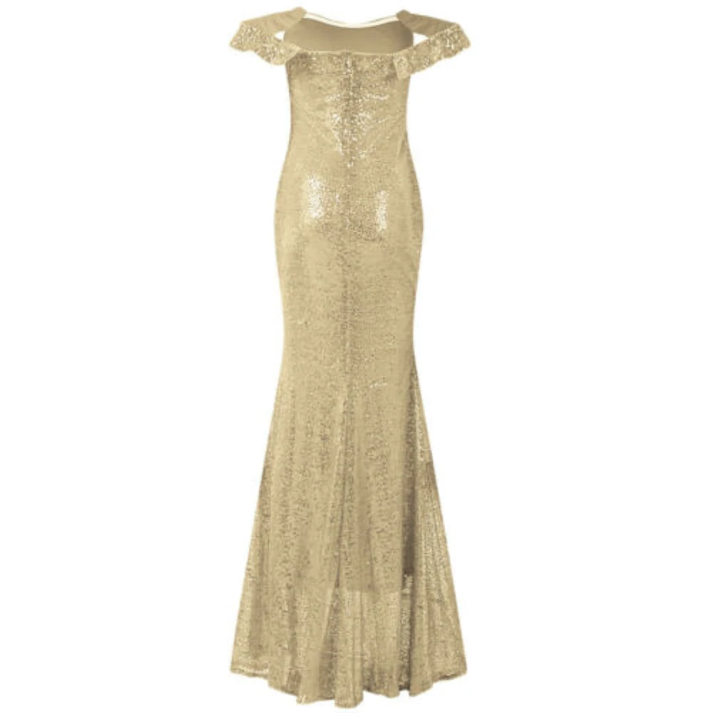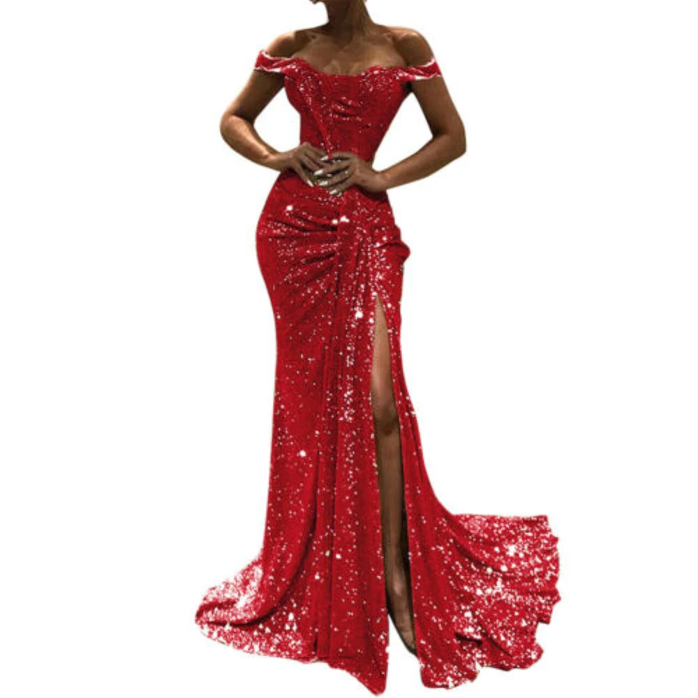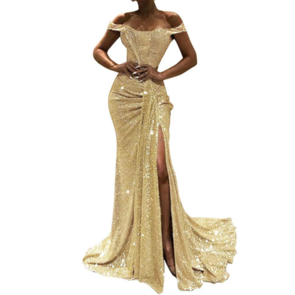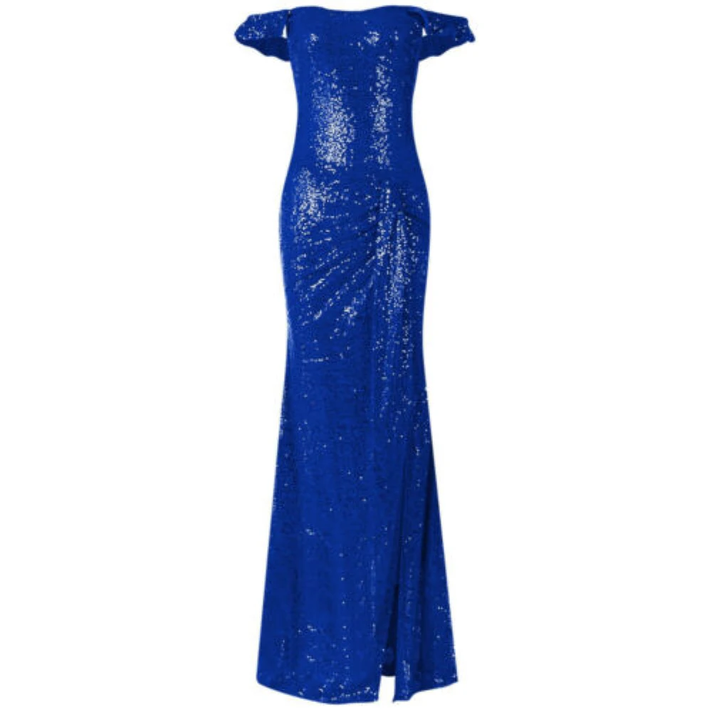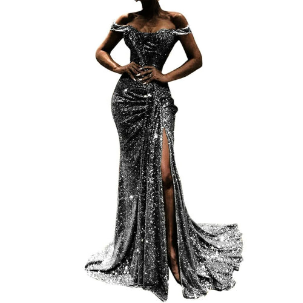 Wipalo Women Fashion Mermaid Side Split Dress Off Shoulder Bodycon Dress Sleeveless Maxi Long Sequins Gown Dress Party Vestidos