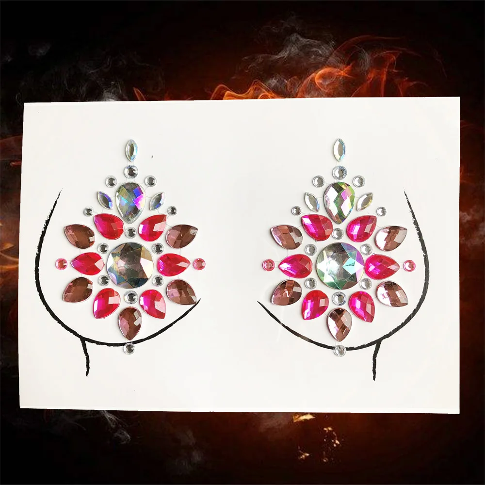 Наклейки на соски Rave Стразы, самоклеящиеся блестящие украшения для груди, боди-арта, Одноразовые 3D татуировки, драгоценные камни вечерние, фестиваля