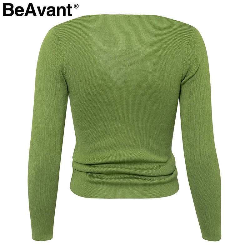 BeAvant Sexy v-neck women knitted pullover sweater Autumn winter long sleeve female sweater Drawstring streetwear ladies jumper