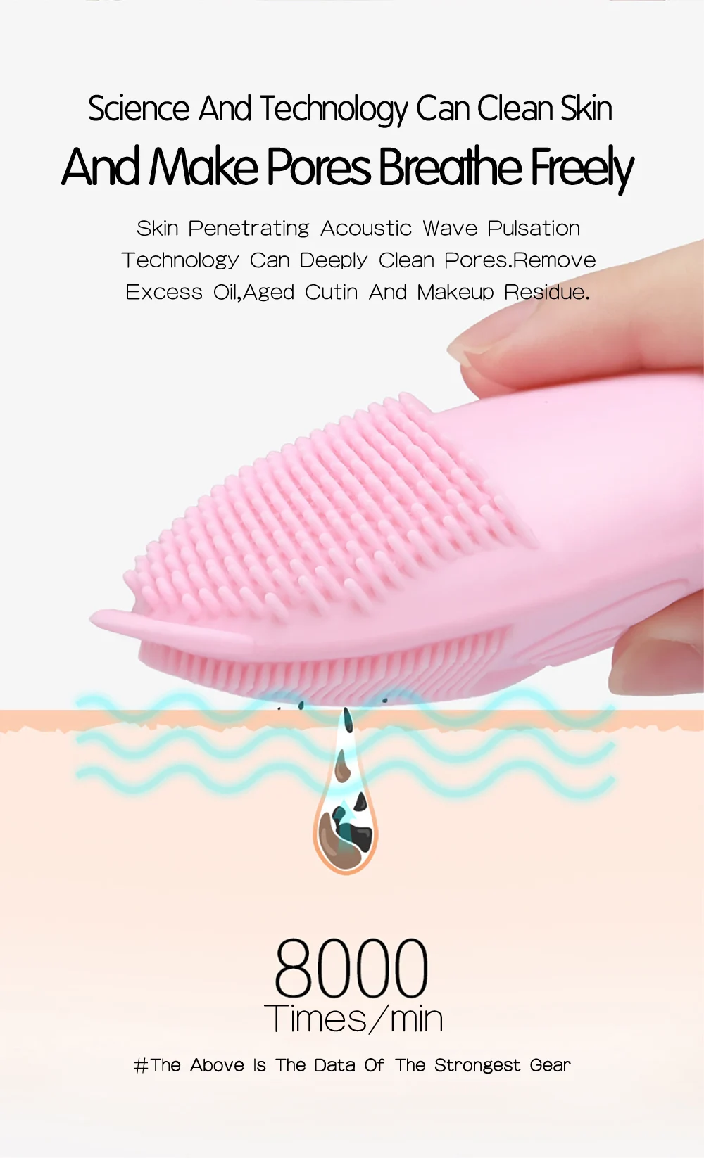 Максимум 8000 раз/мин, глубоко очищает поры, Удаляет излишки масла, старение кутина и остатки макияжа