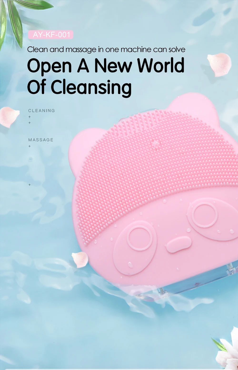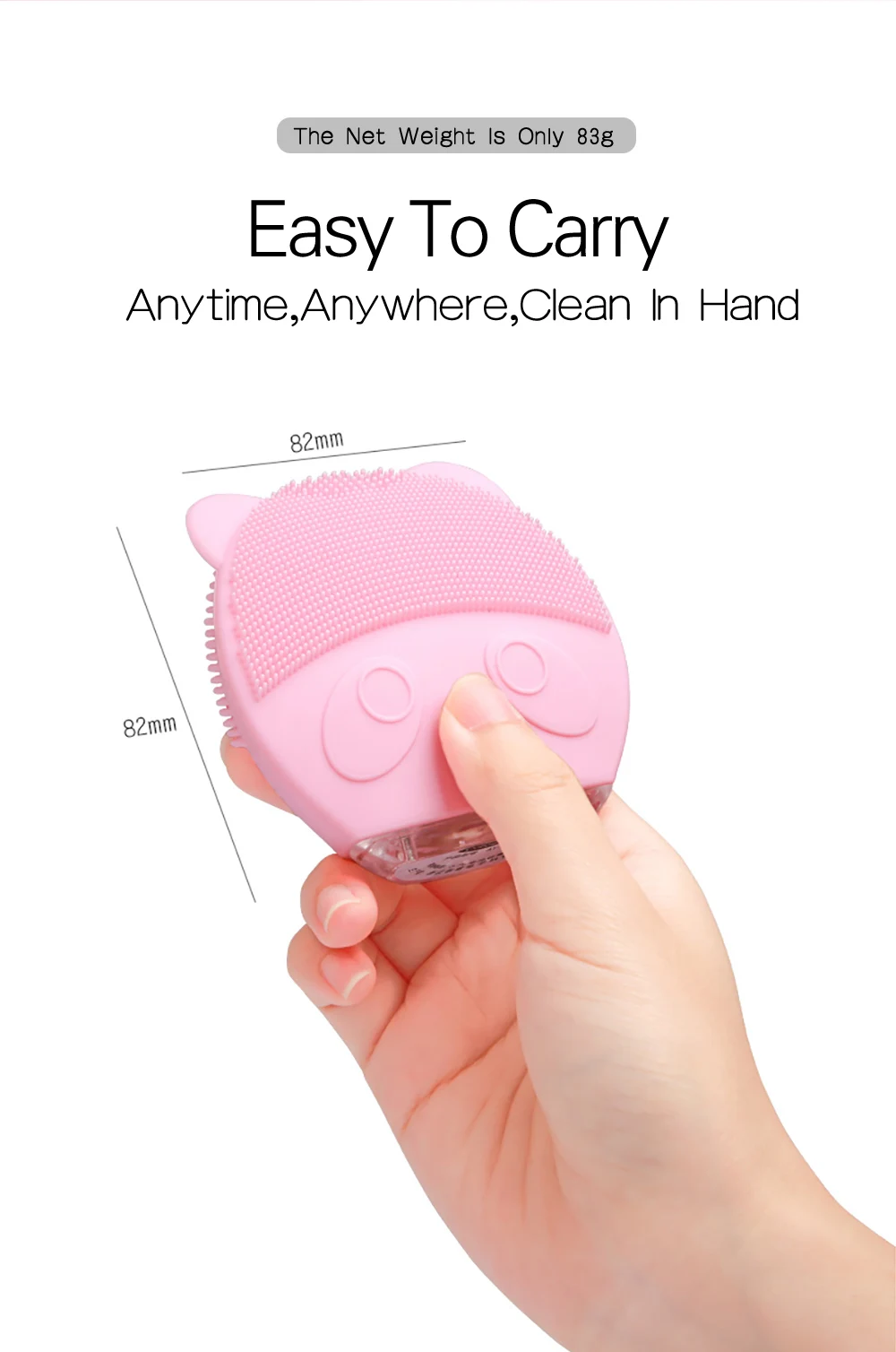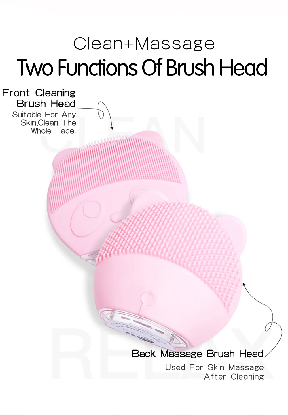 Положительная сторона: Очистите щетку, подходит для любого типа кожи, Очистите все лицо. Задняя сторона: для массажа кожи после очищения.