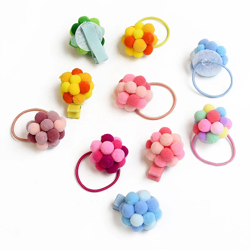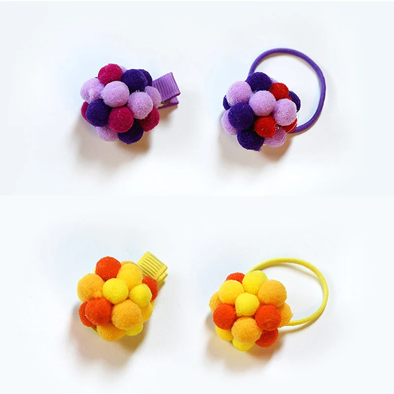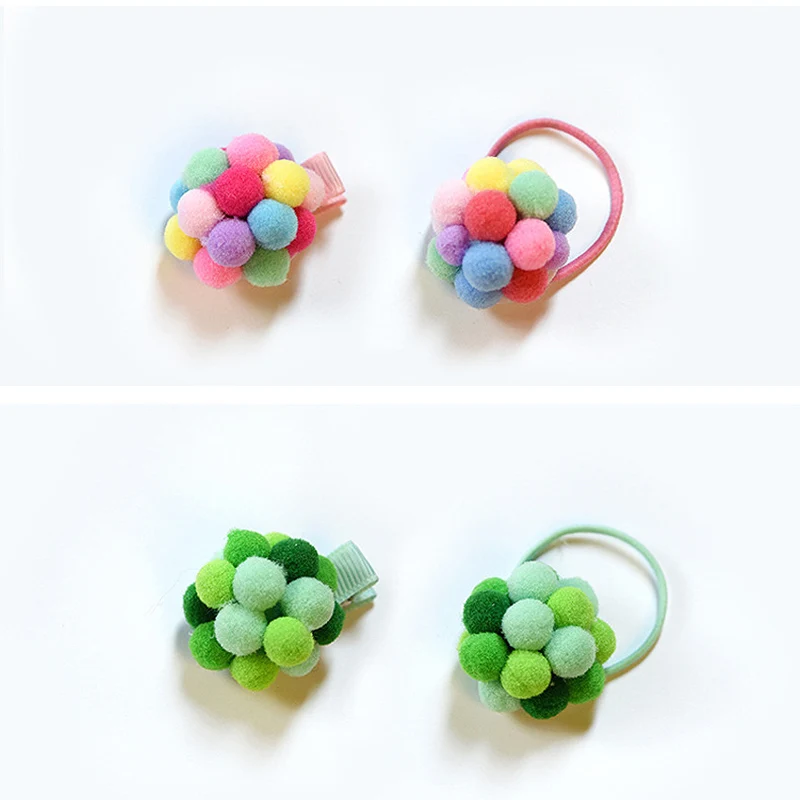 Эластичный держатель для конского хвоста, карамельный цвет, Регулируемая Веревка для волос, 1 шт./2 шт., заколка для волос, детские пушистые шарики для девочек