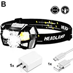 1 х ИндуктивныйНалобный фонарь(ВстроенАккумулятор) (1 шт.);Зарядка через usb кабель