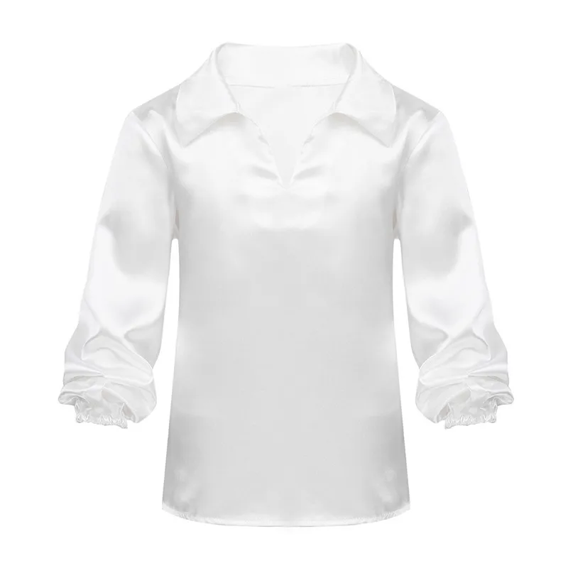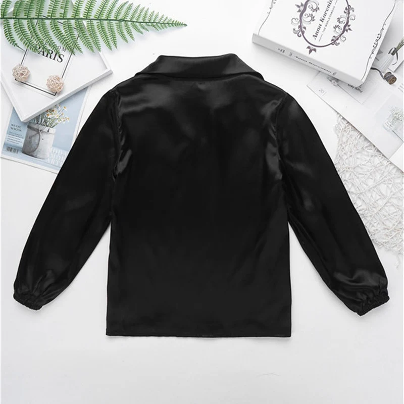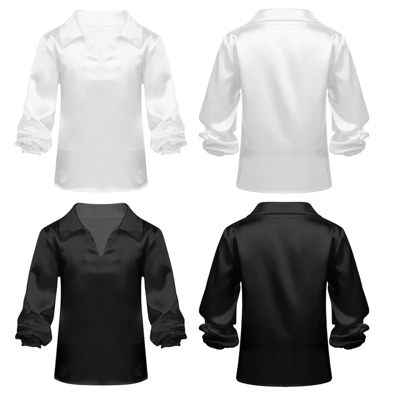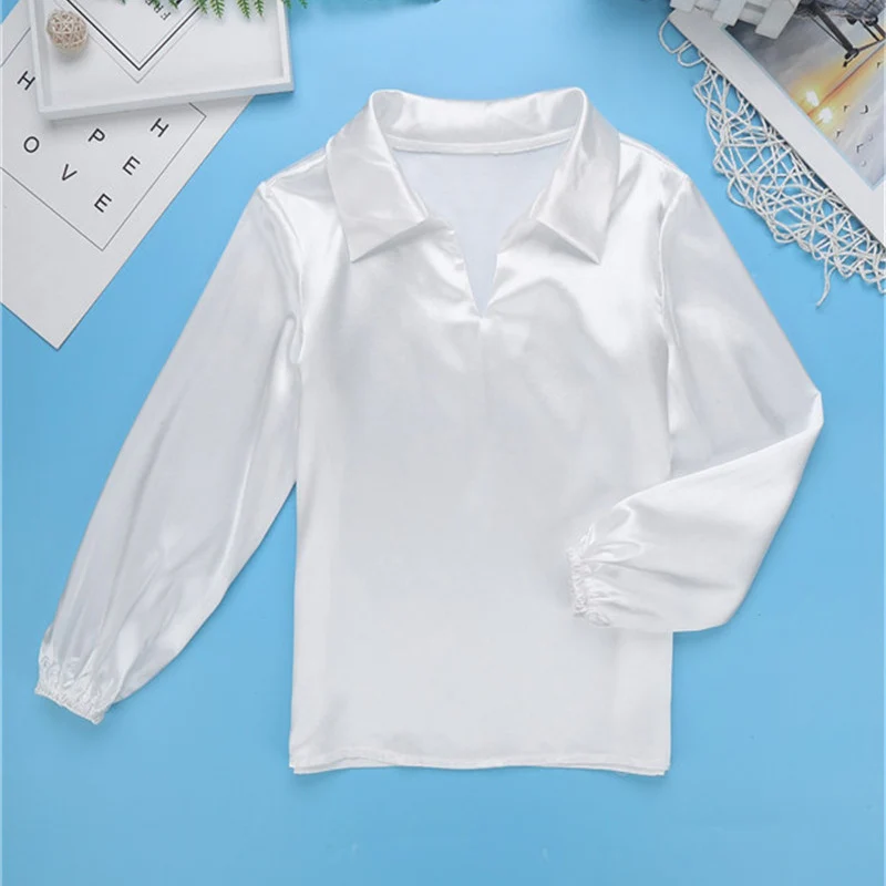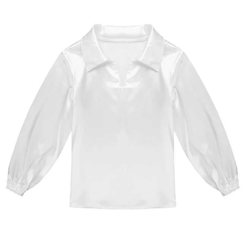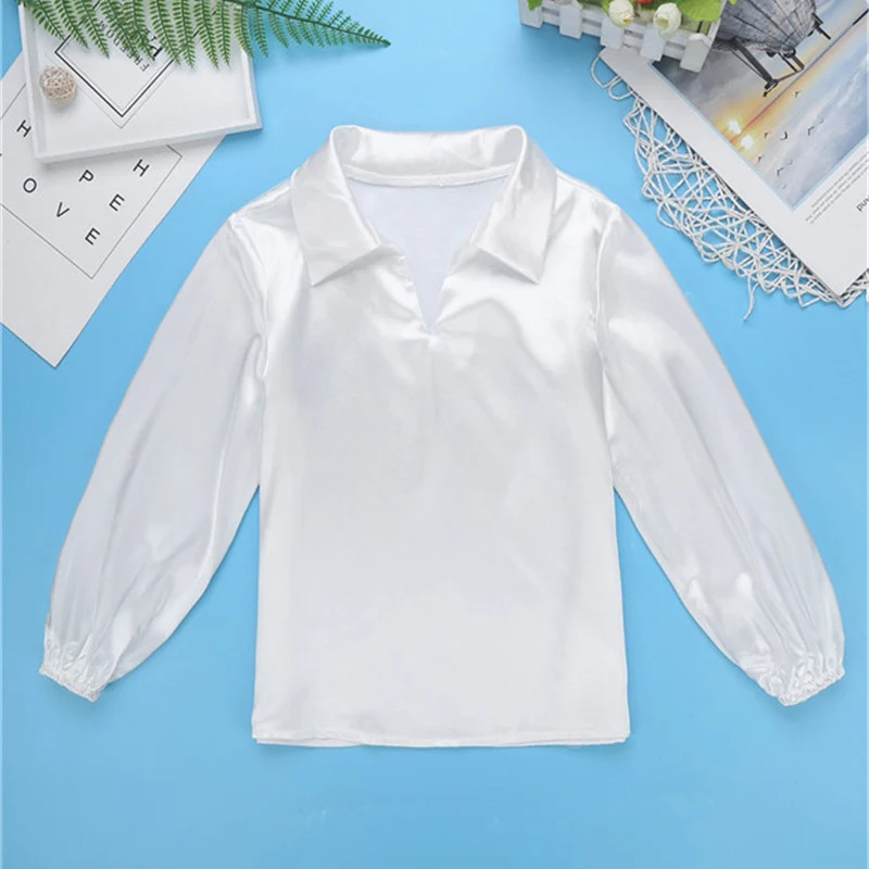 Детская атласная балетная танцевальная рубашка для мальчиков костюм без застежки с длинными рукавами и воротником для сценического выступления одежда для тренировок и экзамена