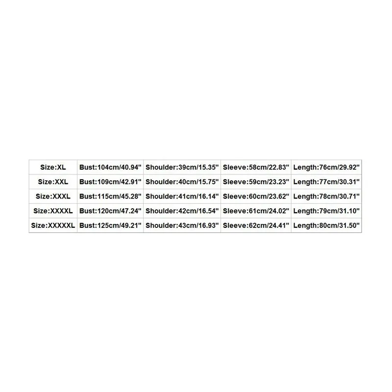 | Size | Bust | Shoulder | Sleeve | Length |
